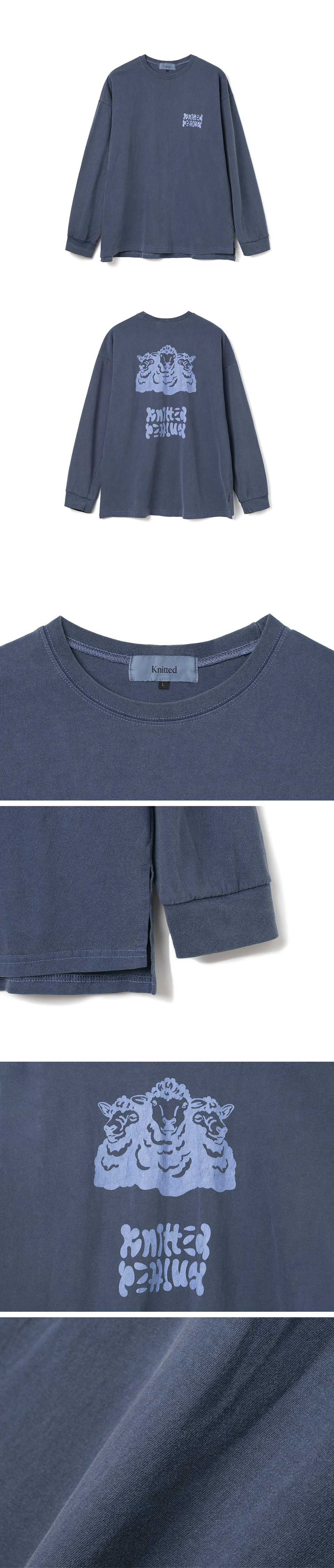 니티드 피그먼트 롱 슬리브 티셔츠 워싱 블루