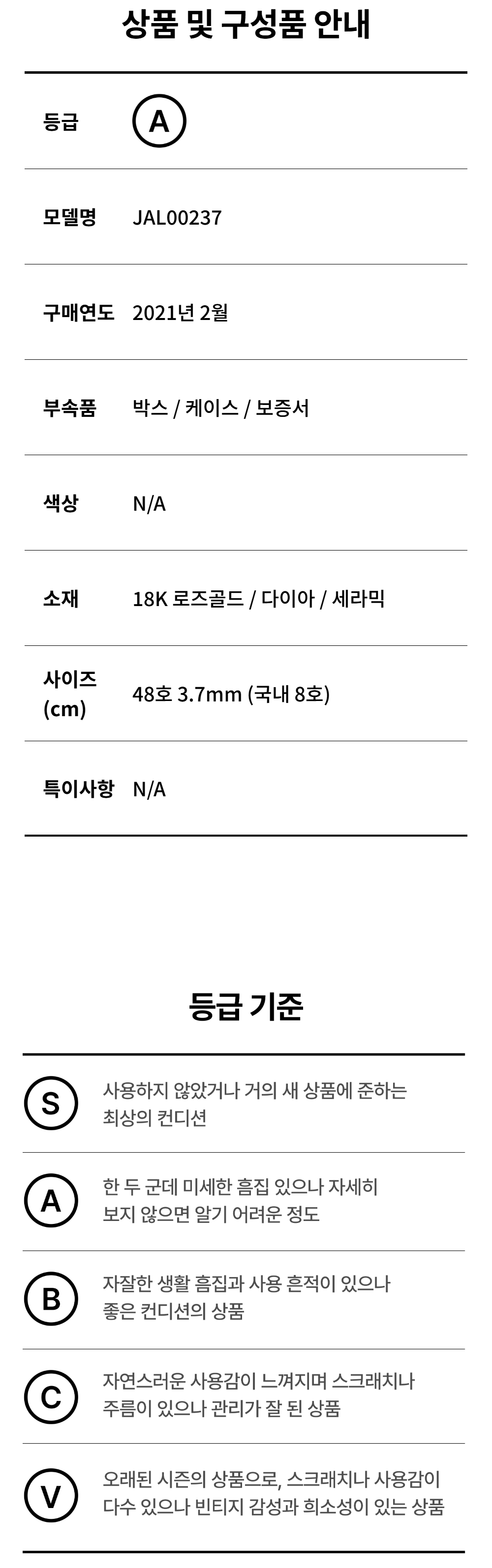 부쉐론 JAL00237 콰트로 화이트 에디션 18K 로즈골드 다이아 48호 3.7mm