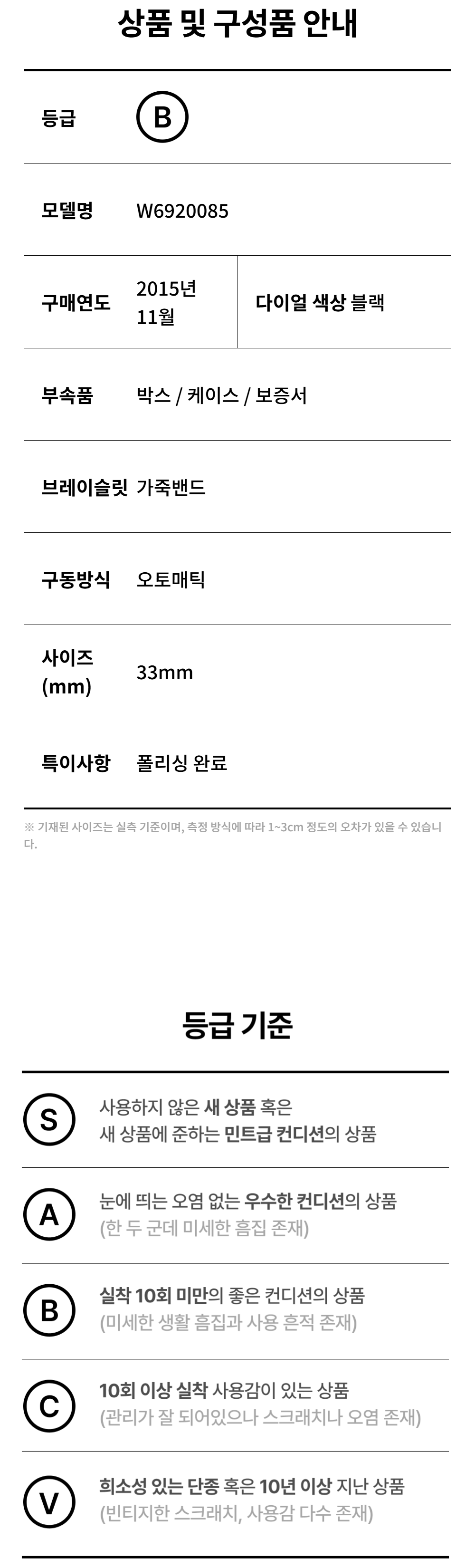 까르띠에 W6920085 발롱블루 스틸 가죽밴드 오토매틱 33mm