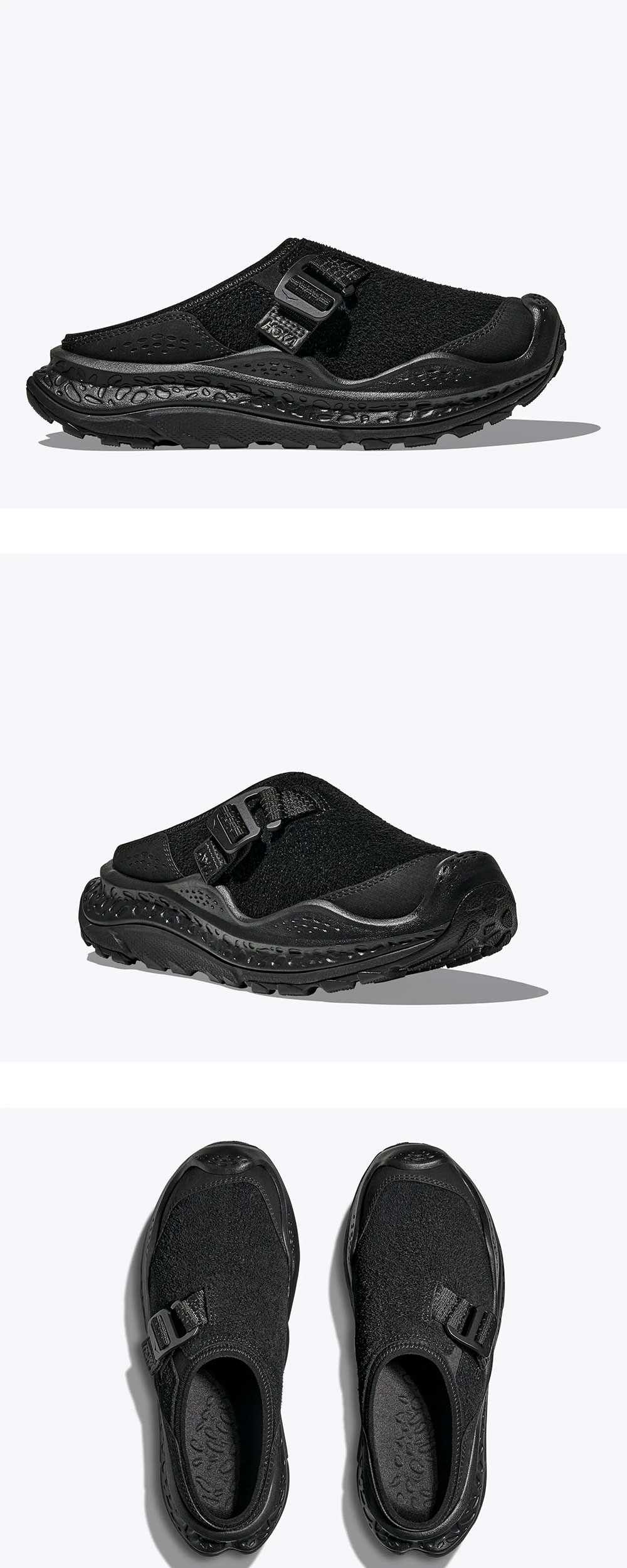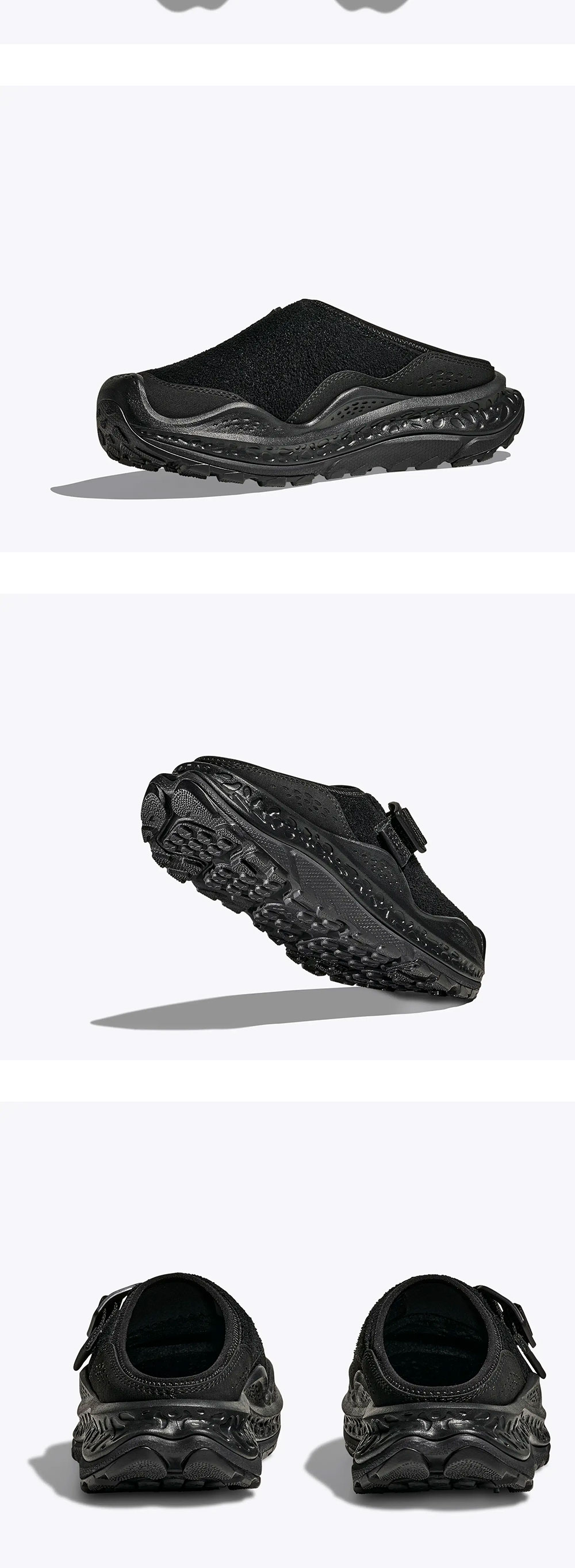호카 오라 프리모 EXT 블랙 블랙입니다. - 일상부터 휴식 시간까지 커버하는 리커버리 슬라이드 뮬 - 프리미엄 스웨이드 어퍼 - 두 겹 EVA 미드솔 구조 - 30% 리사이클 러버 아웃솔 - 앞코와 뒤꿈치 보강 러버 패널 - G-훅 클로저로 안정적인 핏 조절 - 네오프렌 안감
