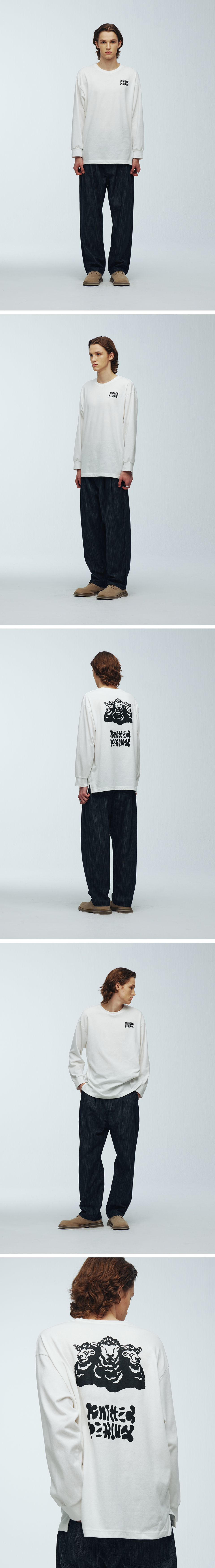니티드 그래픽 롱 슬리브 티셔츠 화이트