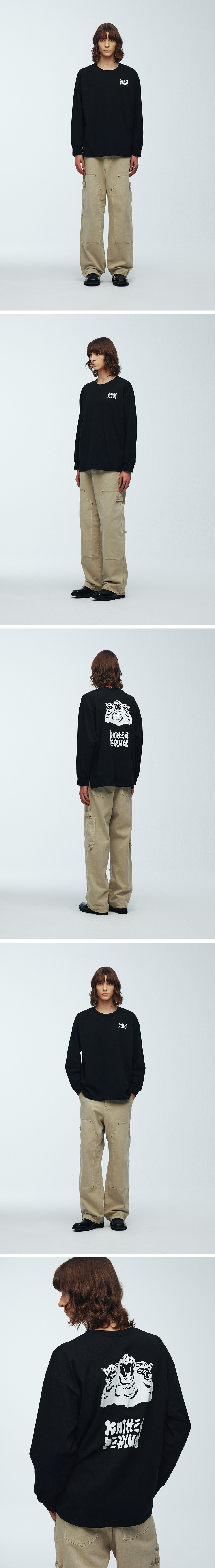 니티드 그래픽 롱 슬리브 티셔츠 블랙