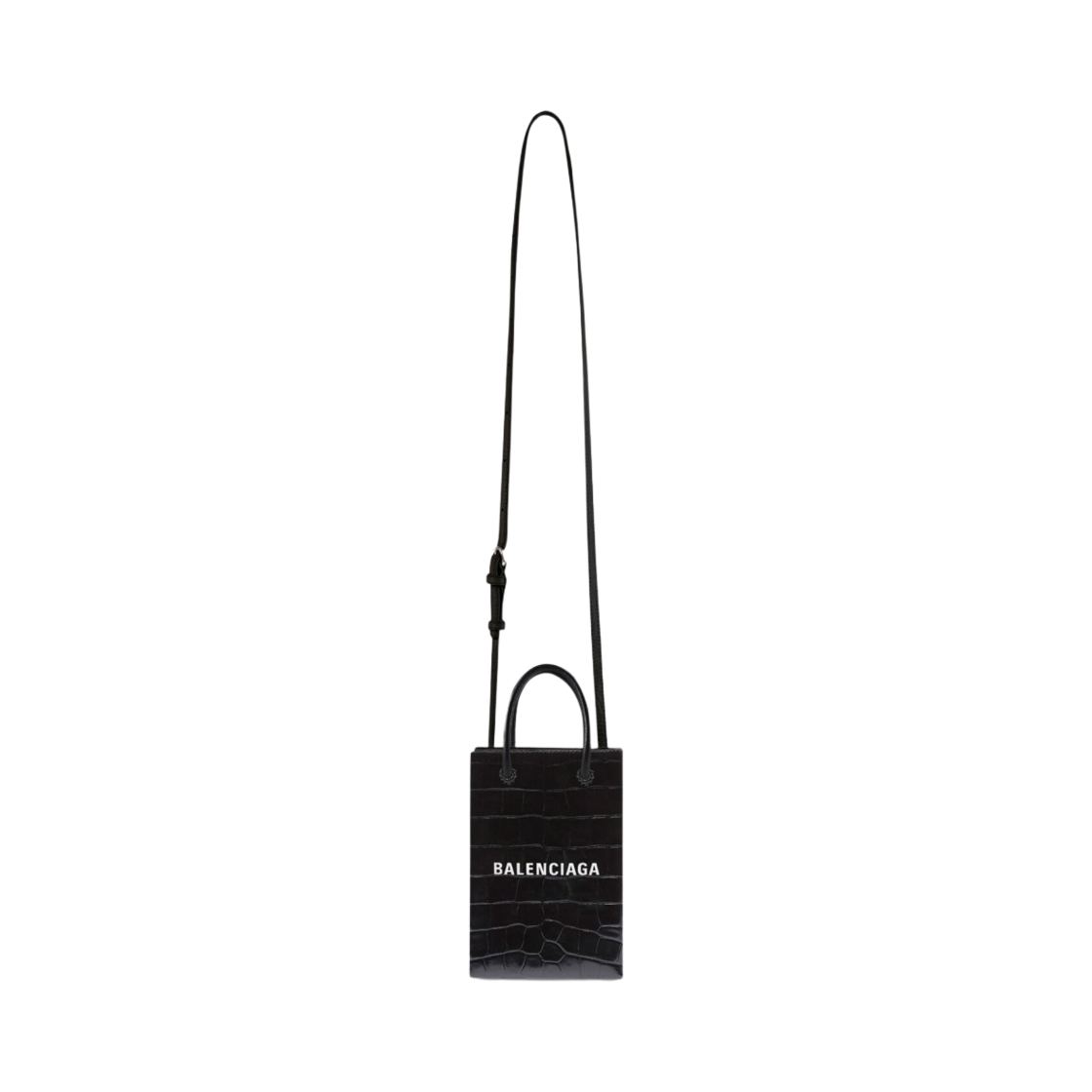 Balenciaga Crocodile Embossed Mini Shopping Bag Phone Holder Black