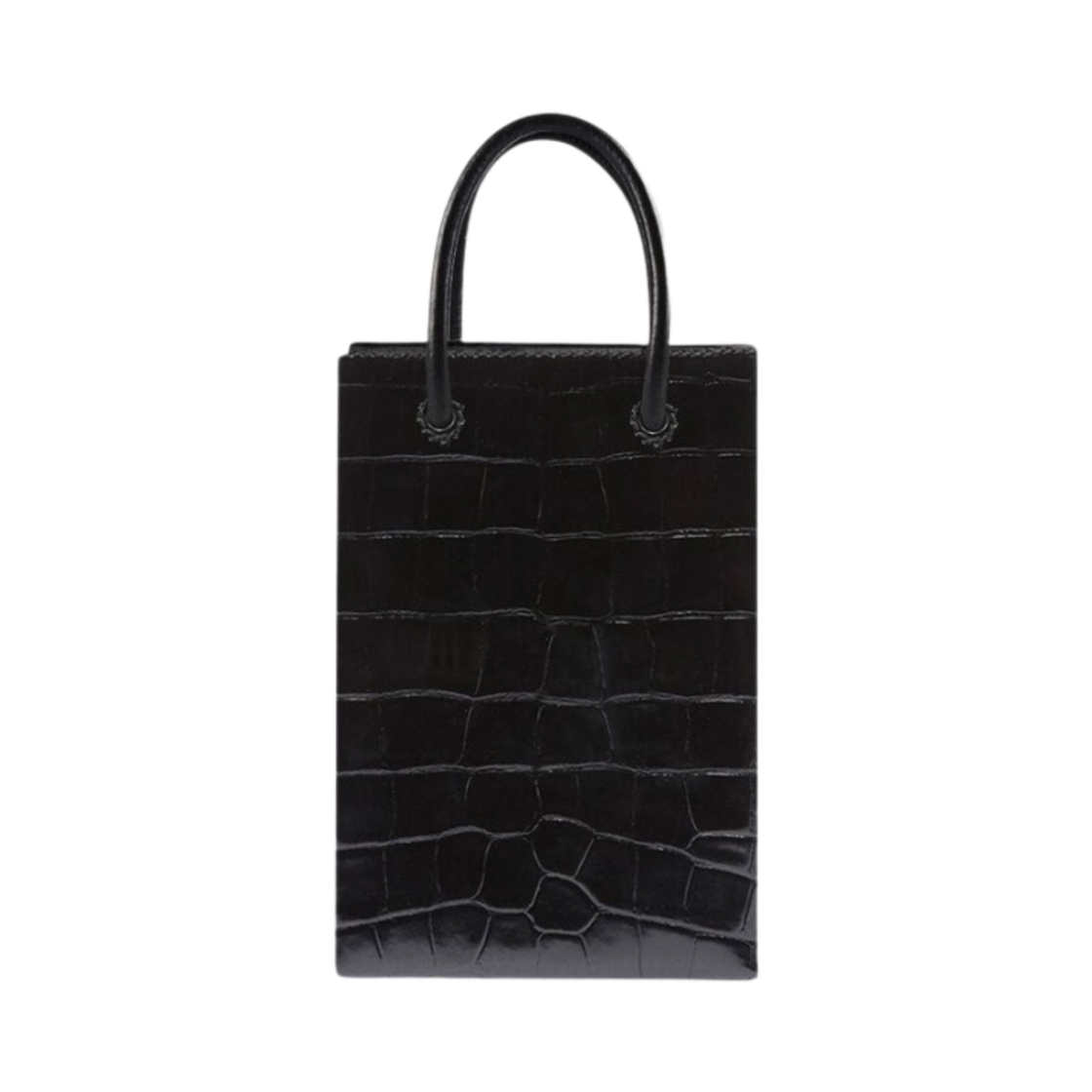 발렌시아가 크로커다일 엠보스 미니 쇼핑백 폰 홀더 블랙
