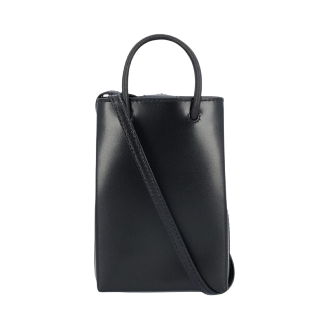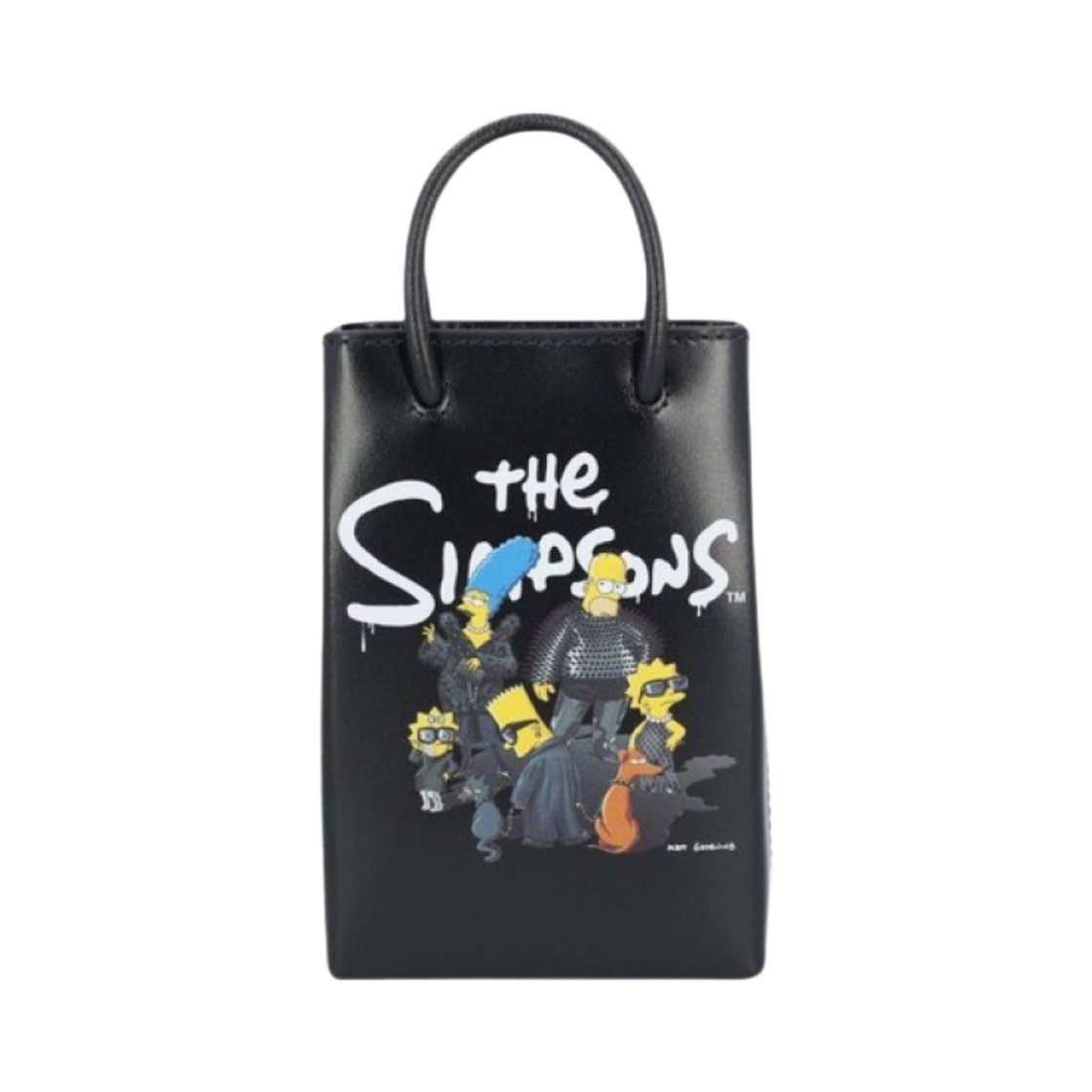 발렌시아가 x 더 심슨 & 20th 텔레비전 샤이니 박스 카프스킨 미니 쇼핑백 폰 홀더 블랙