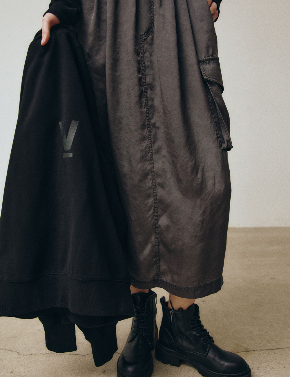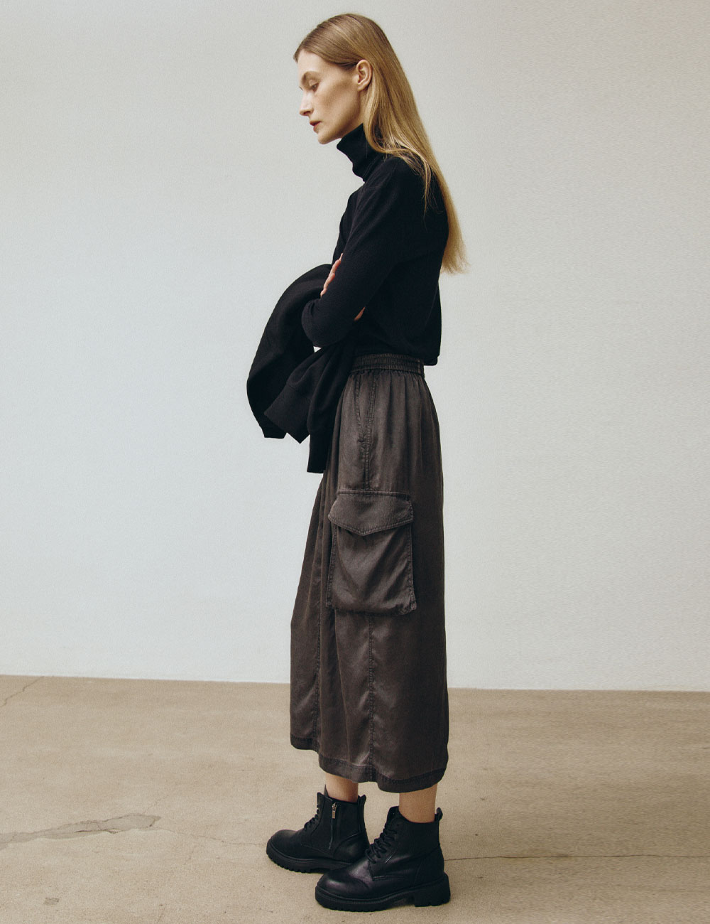 - 신축성 있는 허리 이밴드 - 친환경 안료로 염색한 수입원단 사용 - 가먼트 바이오 워싱으로 빈티지한 느낌 - 전면에 사선포켓과 옆면에 카고포켓 - 뒷면 밑단에 트임