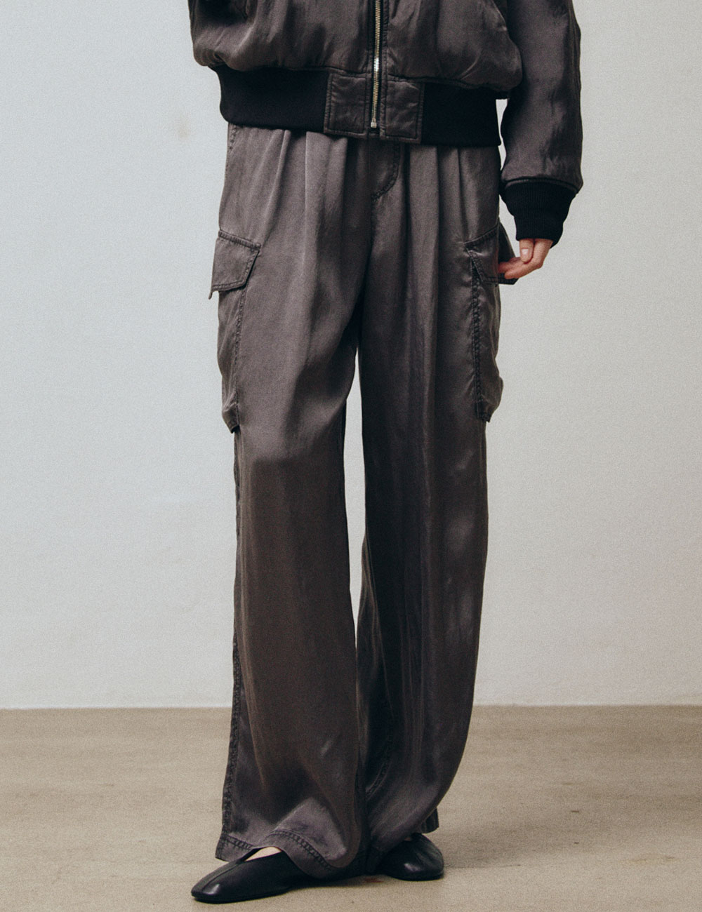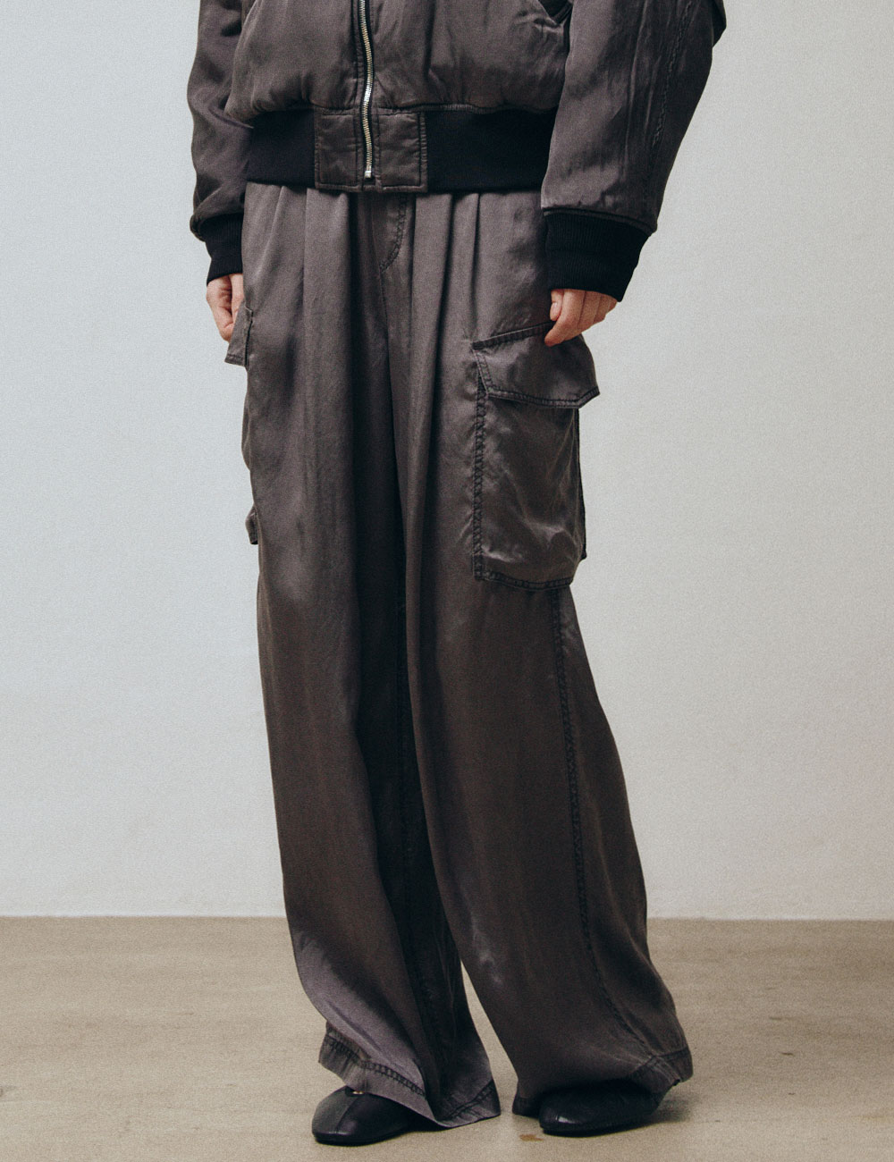 - 신축성 있는 허리 이밴드 - 친환경 안료로 염색한 수입원단사용 - 가먼트 바이오 워싱으로 빈티지한 느낌 -사이드 립포켓, 사이드 아웃 카고포켓, 뒷면 플랩포켓