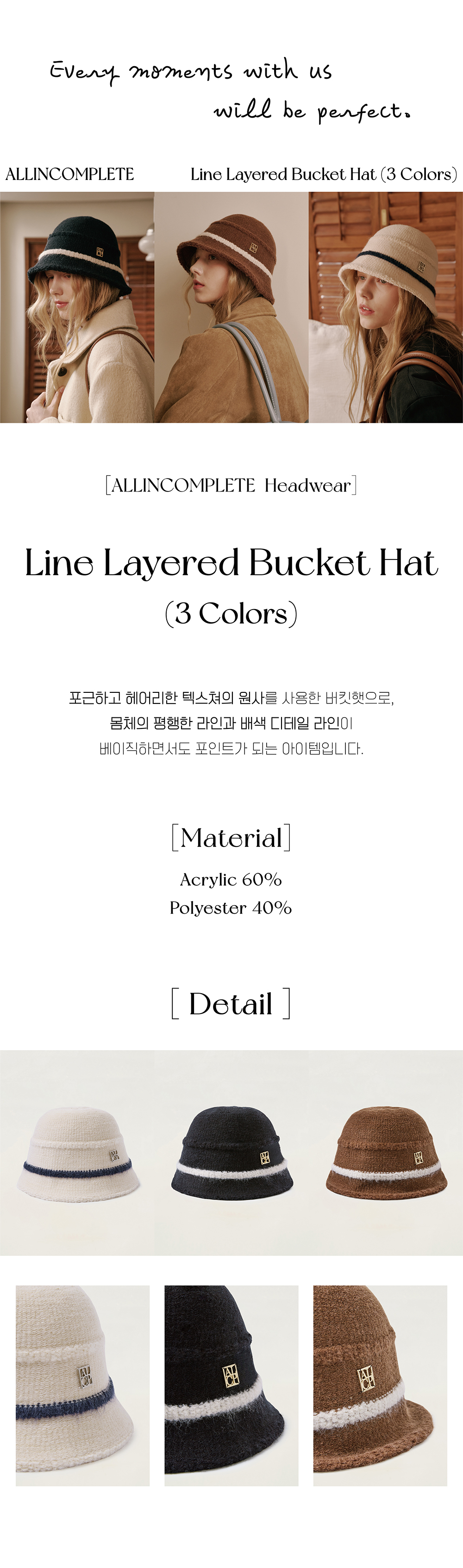 올인컴플리트 라인 레이어드 버킷햇 블랙