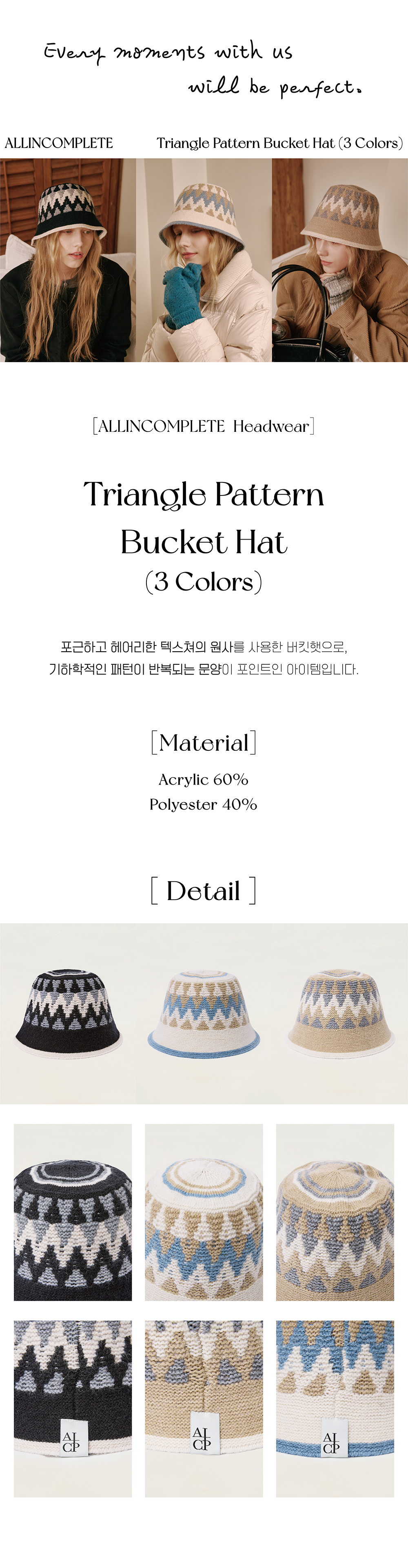 올인컴플리트 트라이앵글 패턴 버킷햇 블랙