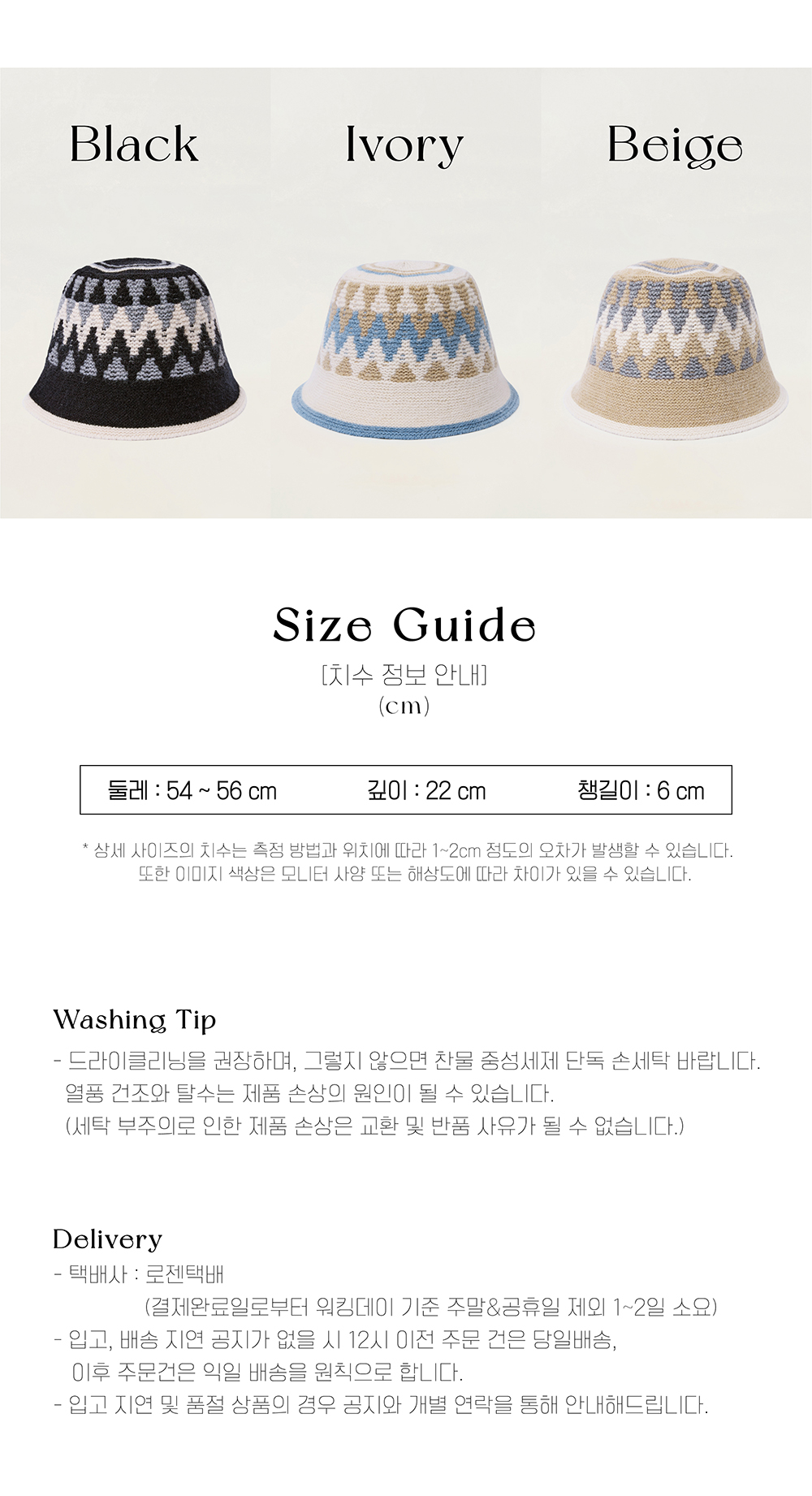 올인컴플리트 트라이앵글 패턴 버킷햇 블랙