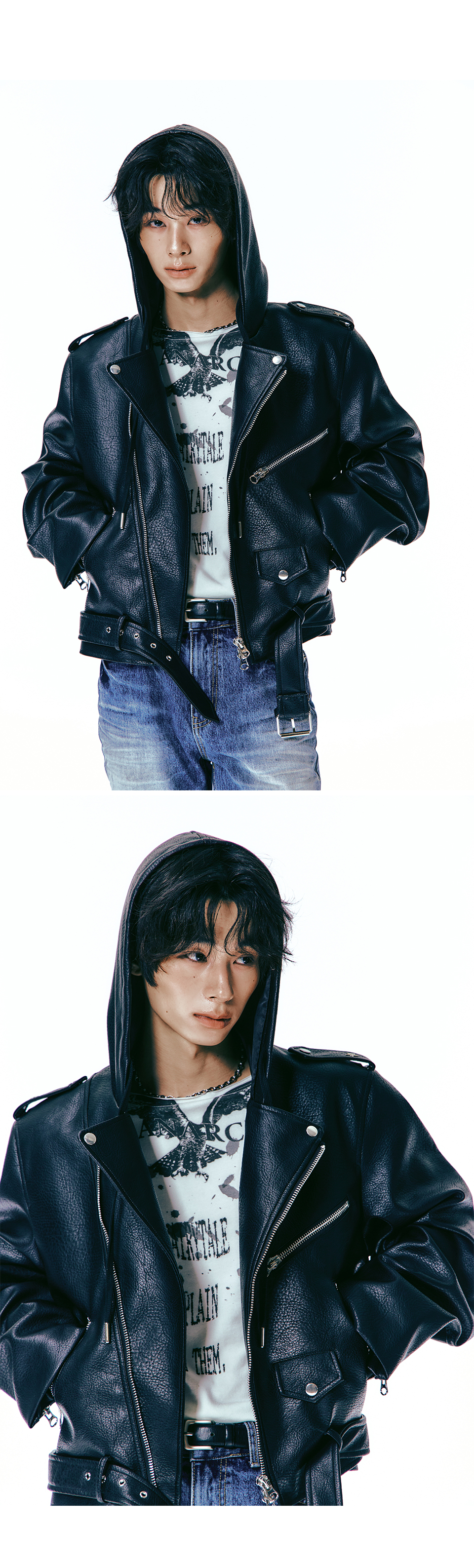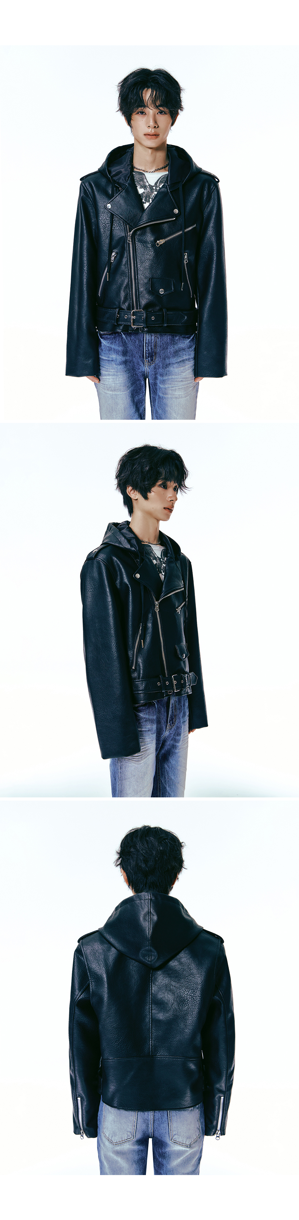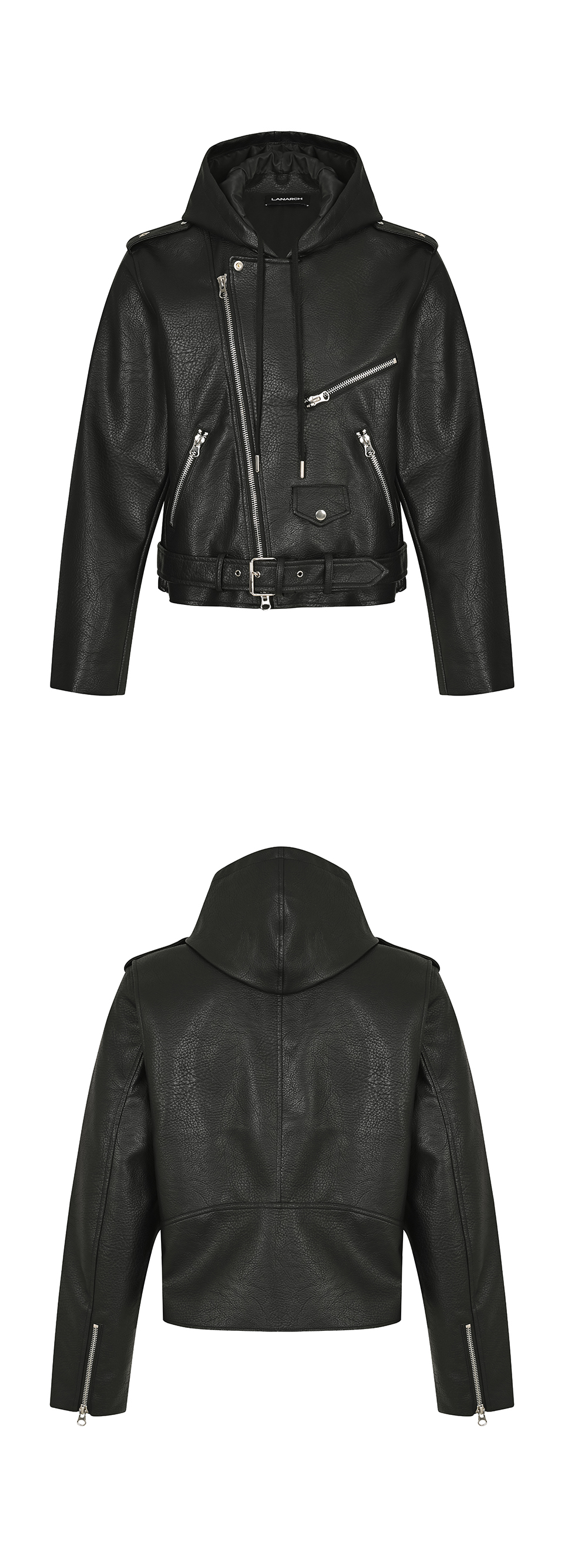 랜 아카이브 0080 스텔라 후드 라이더 자켓 - 블랙