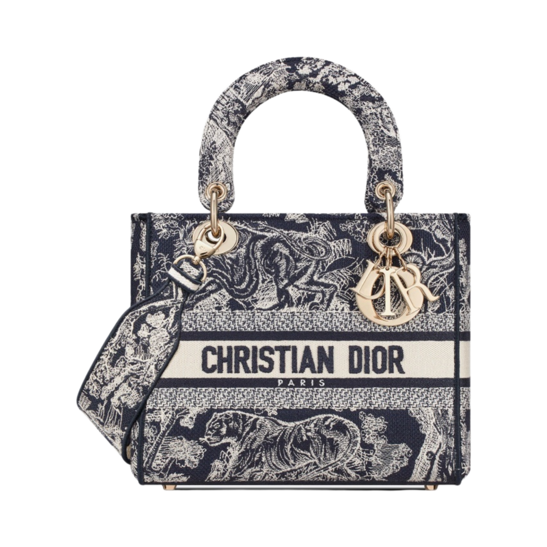 Dior Medium D-Lite Lady Bag Toile de Jouy Reverse Embroidery Blue