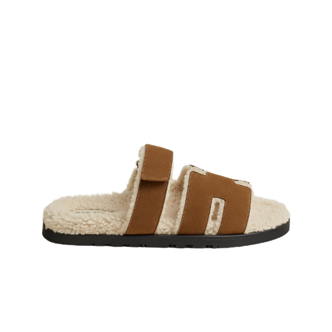 Hermes Chypre Sandal Calfskin & Brun Fume Ecru