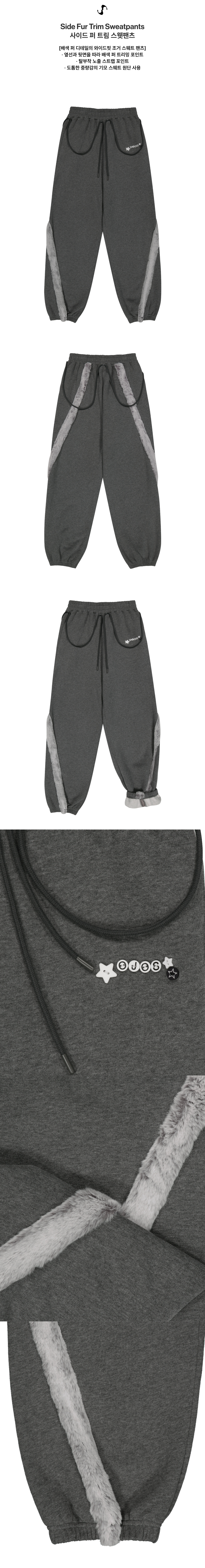 배색 퍼 디테일의 와이드핏 조거 스웨트 팬츠 | 와이드 핏 | OJOS 로고 버튼 자수 장식 | 도톰한 중량감의 기모 스웨트 원단 사용 | 옆선과 뒷면을 따라 배색 퍼 트리밍 포인트 | 사이드 포켓 | 탈부착 노출 스트랩 포인트 | 허리와 밑단 전체 밴딩으로 편안한 착용감
