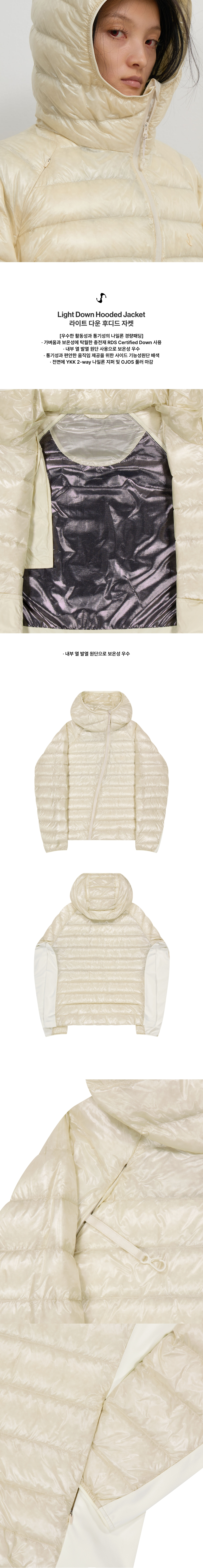 우수한 활동성과 통기성의 나일론 경량패딩 | 오버 핏 | 전면 심볼 로고 전사 | 가벼움과 보온성에 탁월한 충전재 RDS Certified Down 사용 | 통기성과 편안한 움직임 제공을 위한 사이드 기능성원단 배색 | 내부 열 발열 원단 사용으로 보온성 우수 | 전면 사선 지퍼 디테일 | 전면에 YKK 2-way 나일론 지퍼 및 OJOS 풀러 마감 | 전면 가슴 포켓 및 사이드 포켓 YKK CONCEAL® 지퍼 마감 | 밑단 내부 스트링 내장으로 체형에 맞게 실루엣 조절 가능