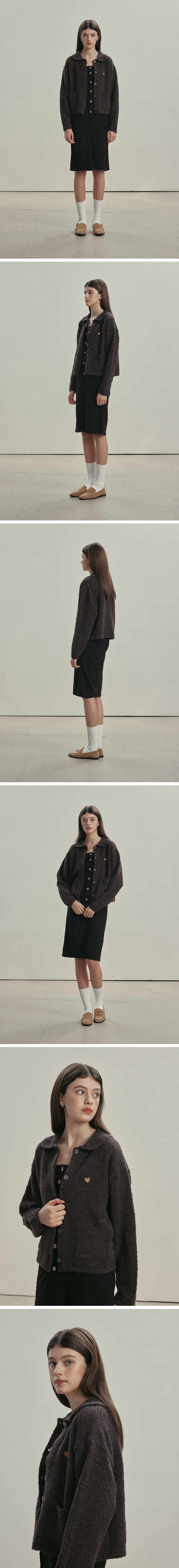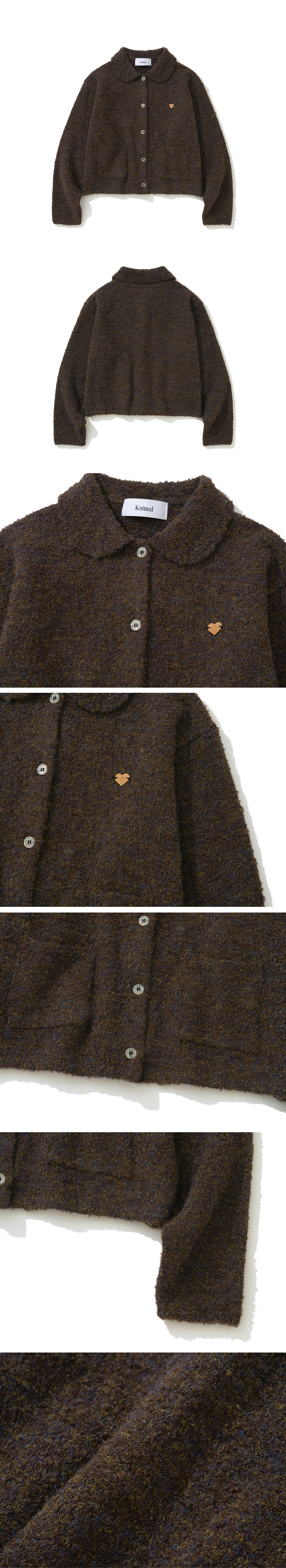 니티드 니티드 여성 부클 카라 크롭 가디건 브라운
