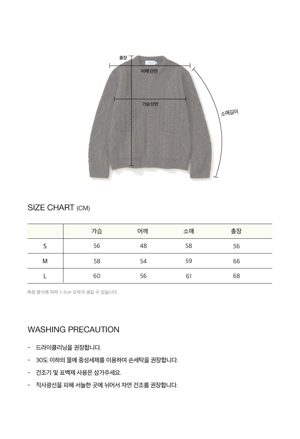 니티드 볼드 케이블 라운드 니트 가디건 브라운