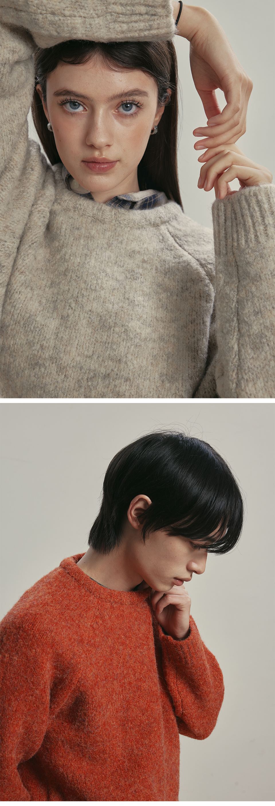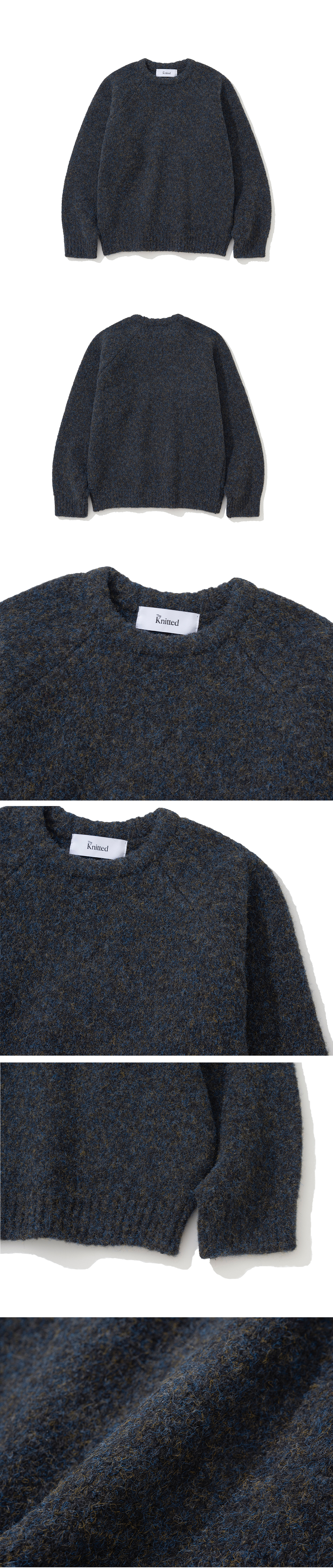 니티드 부클 래글런 크롭 라운드 니트 블랙