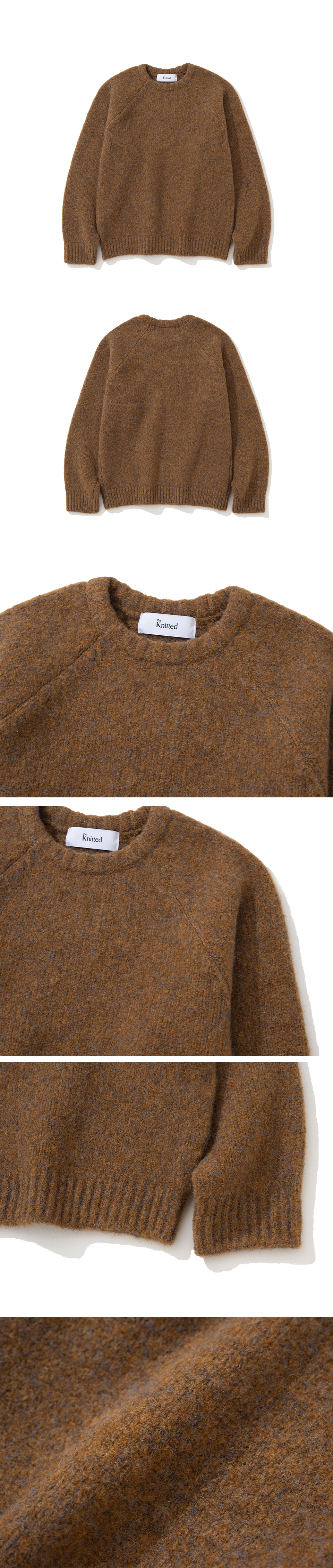 니티드 부클 래글런 크롭 라운드 니트 카멜
