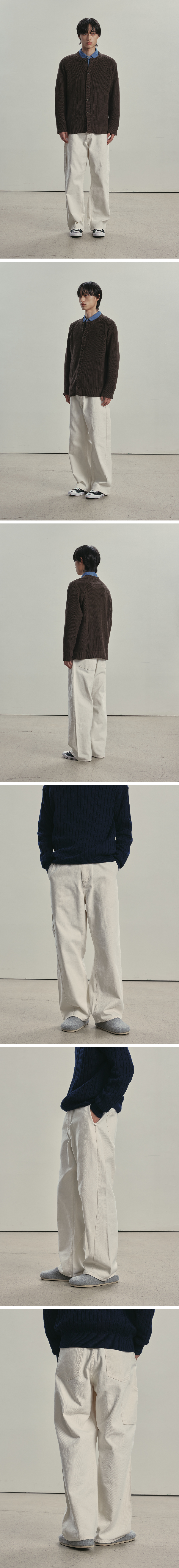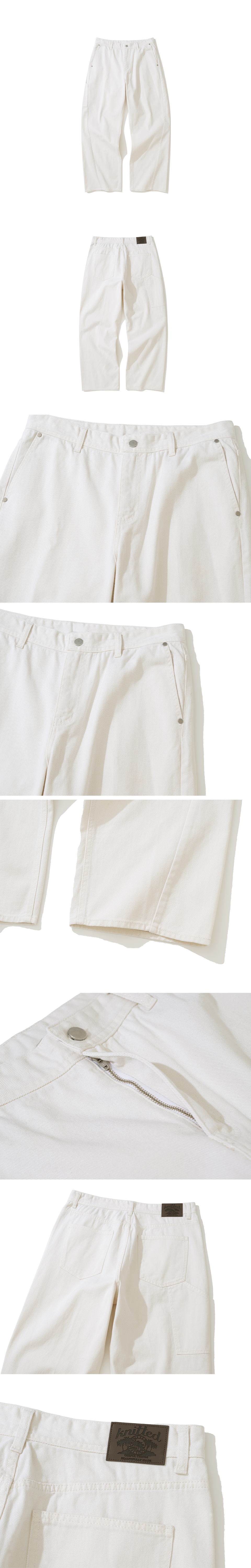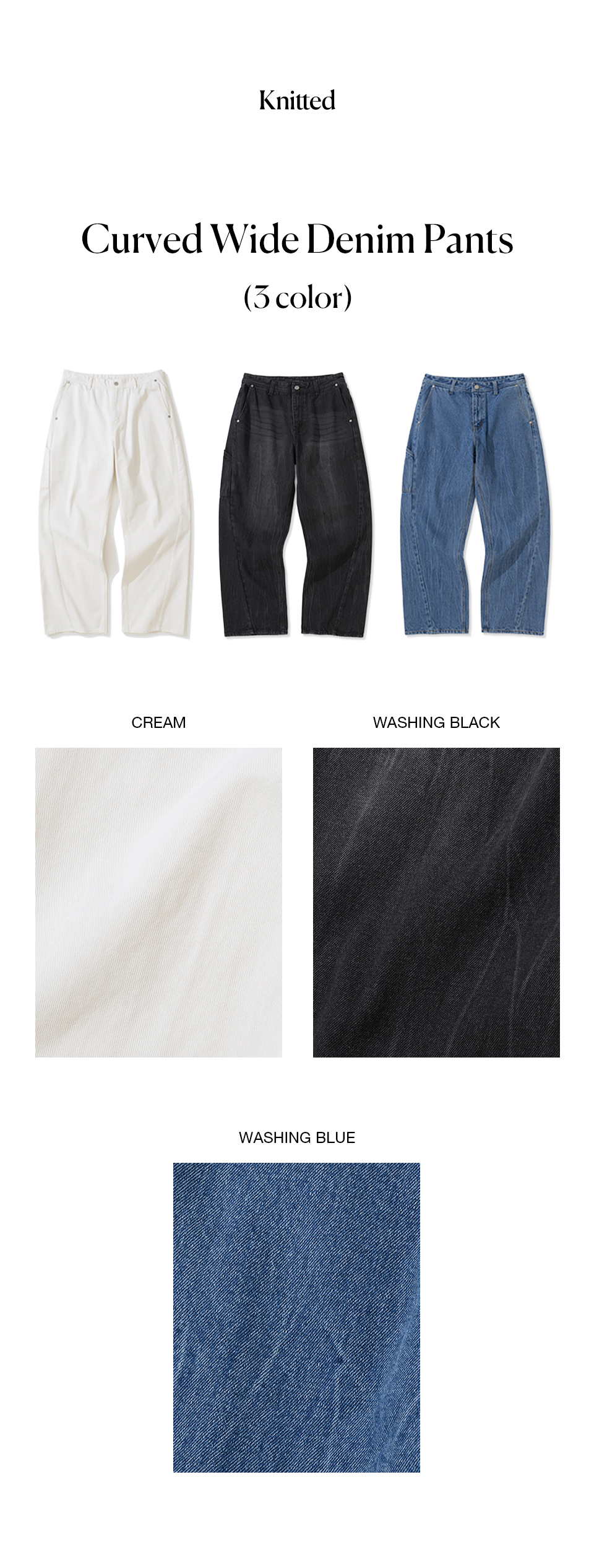 니티드 커브드 와이드 데님 팬츠 크림