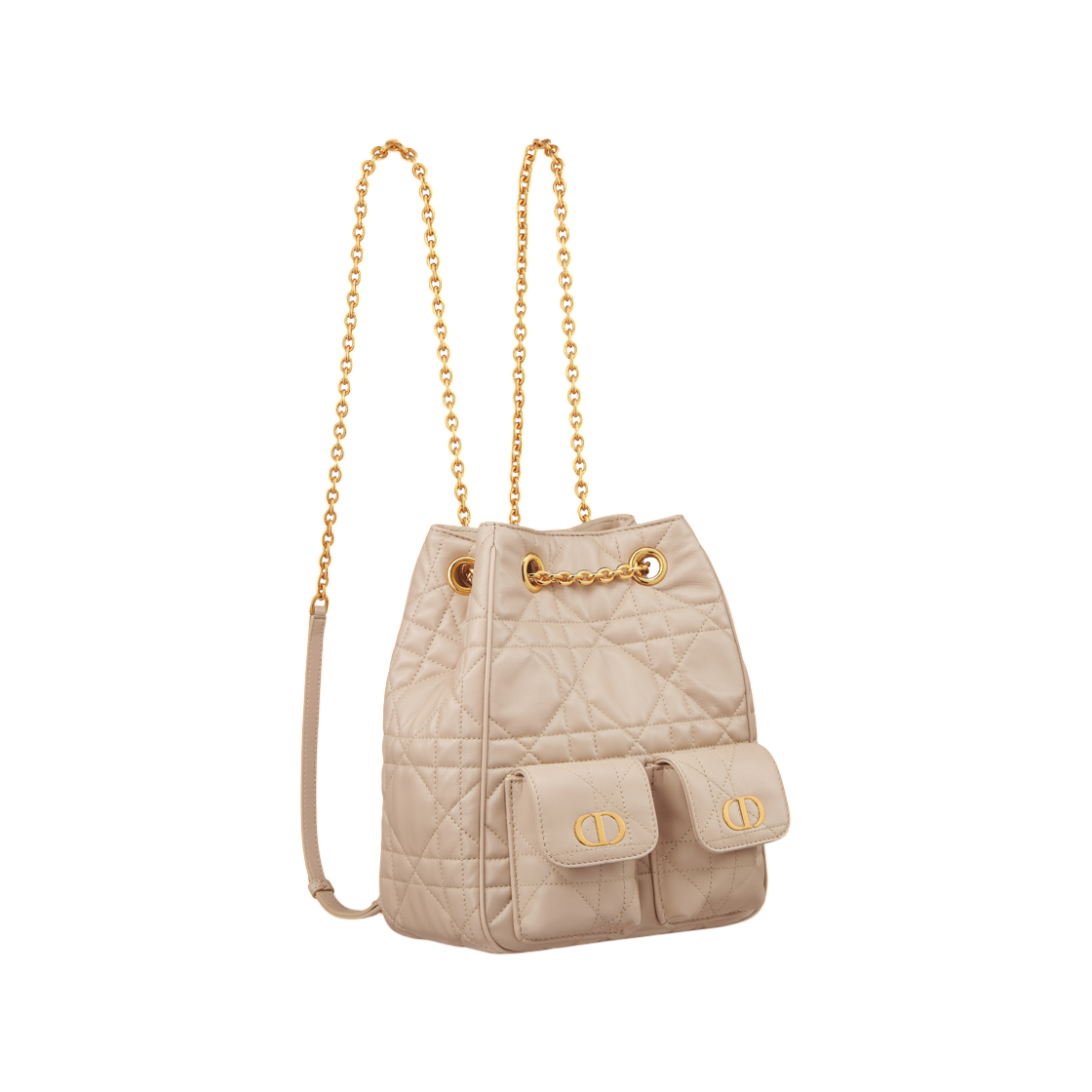 디올 카로 미디움 멀티캐리 체인 백팩 매크로까나쥬 램스킨 파우더 베이지
