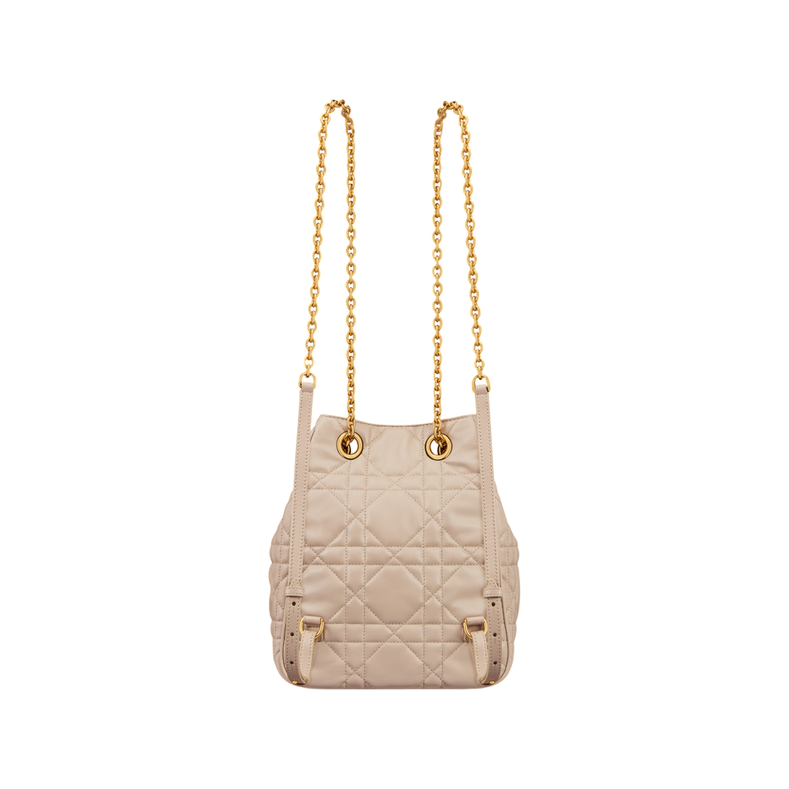 Dior Caro Medium Multicarry Chain Backpack Macrocannage Lambskin Powder Beige