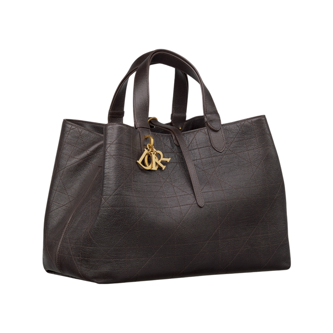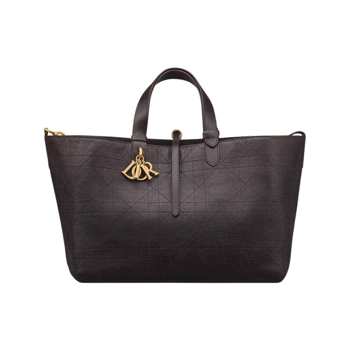 Dior Toujours Large Bag Flat Macrocannage Glossy Grained Calfskin Chocolate Brown