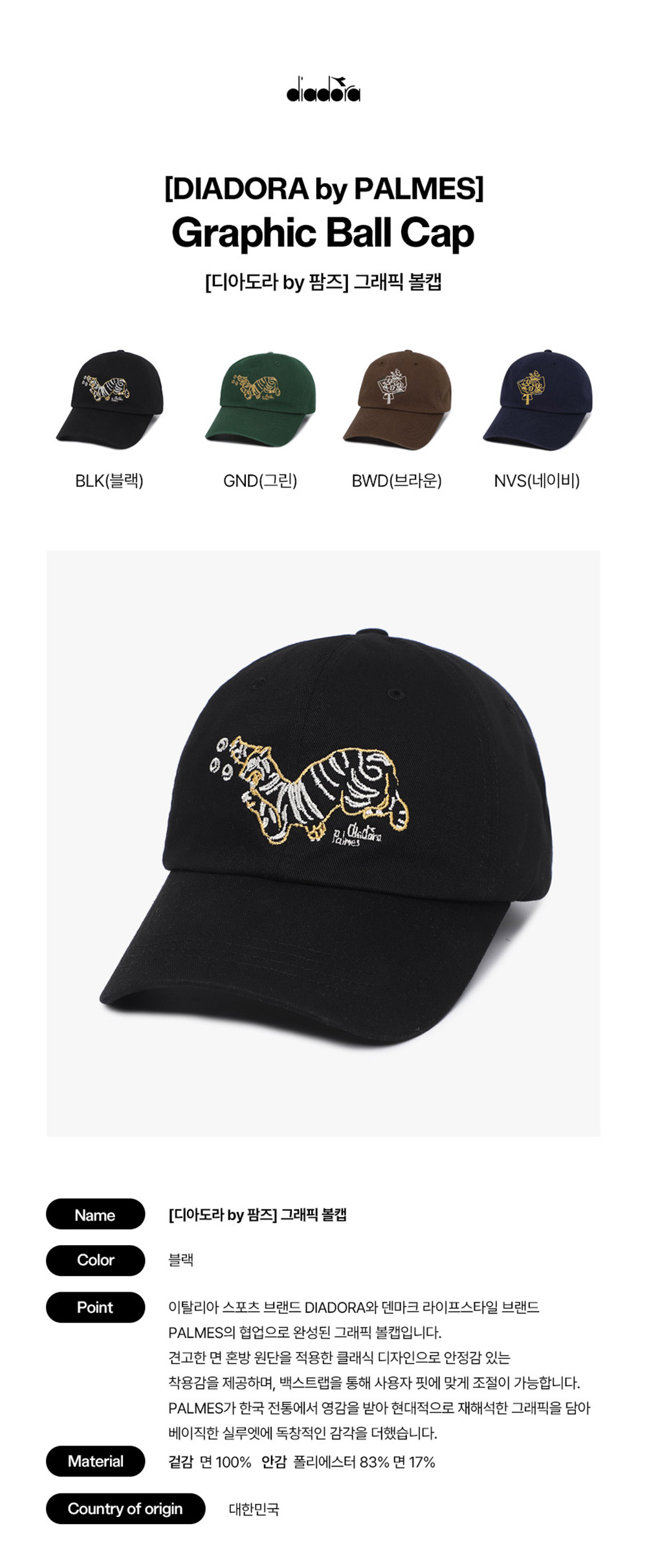 디아도라 바이 팜즈 그래픽 볼캡 블랙