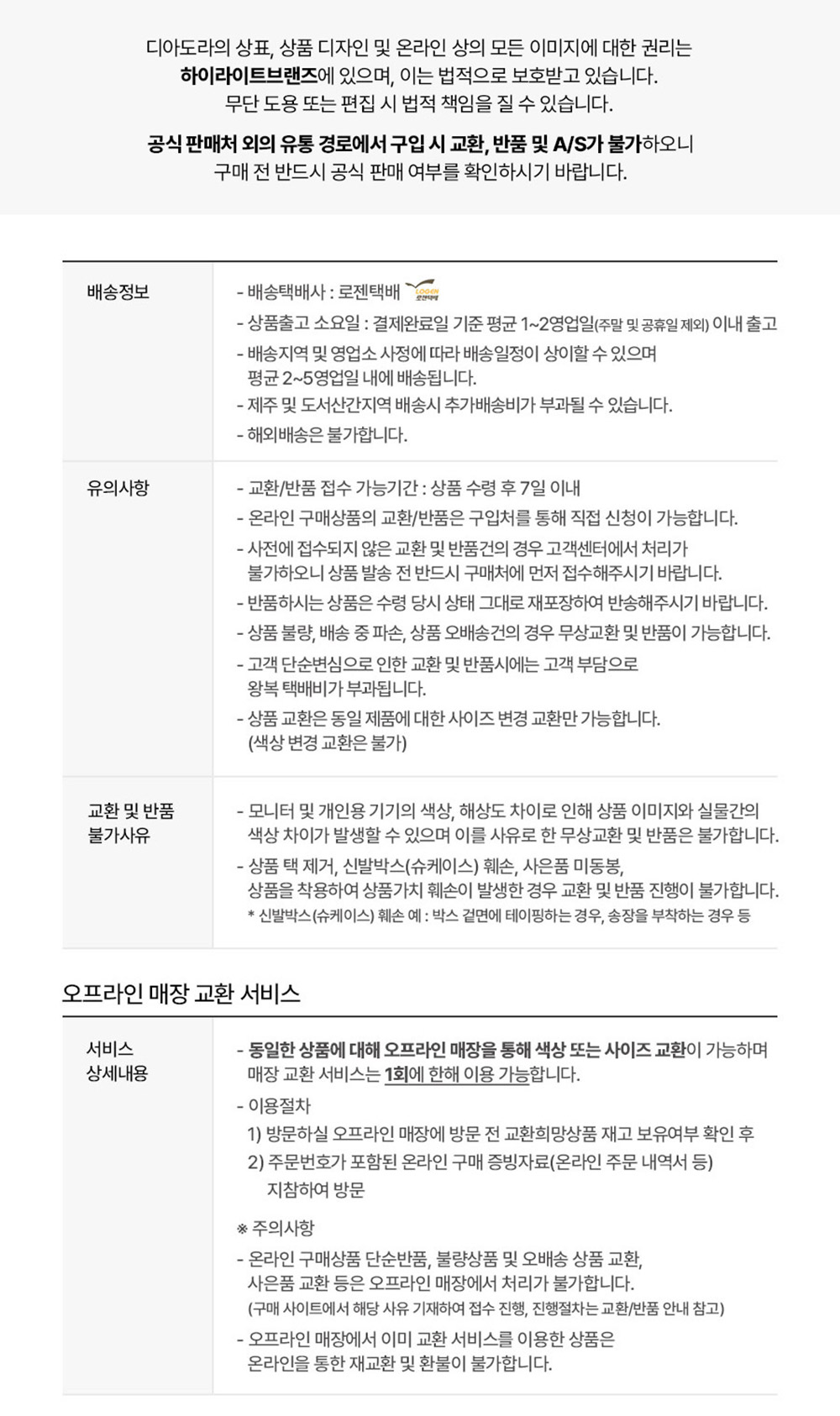 교환 및 반품 안내