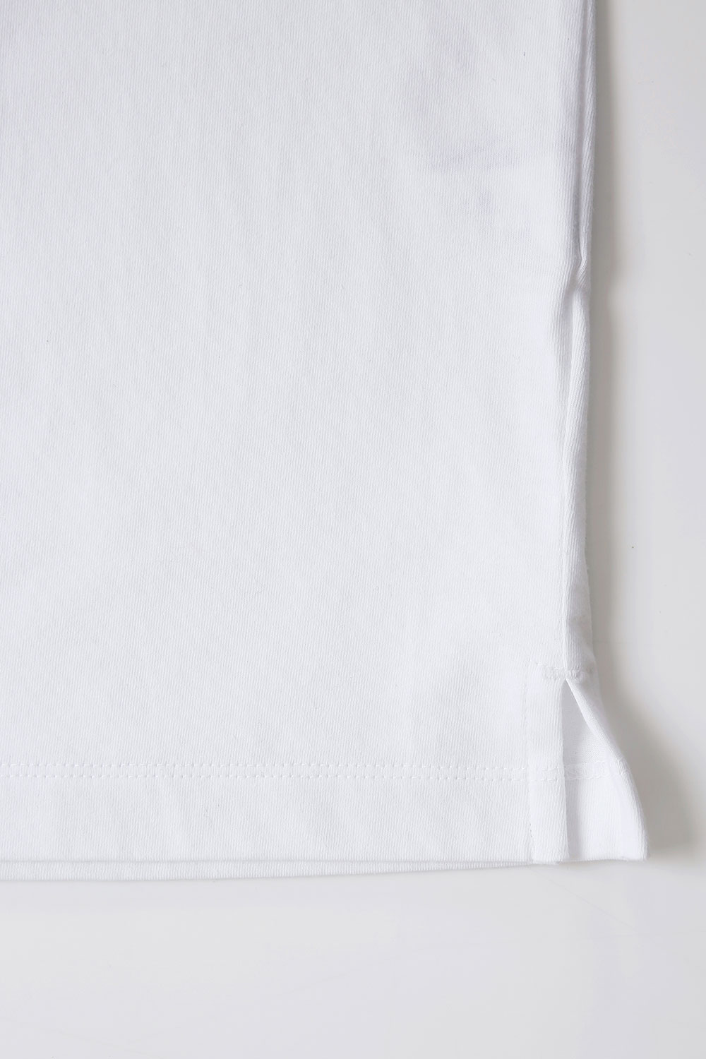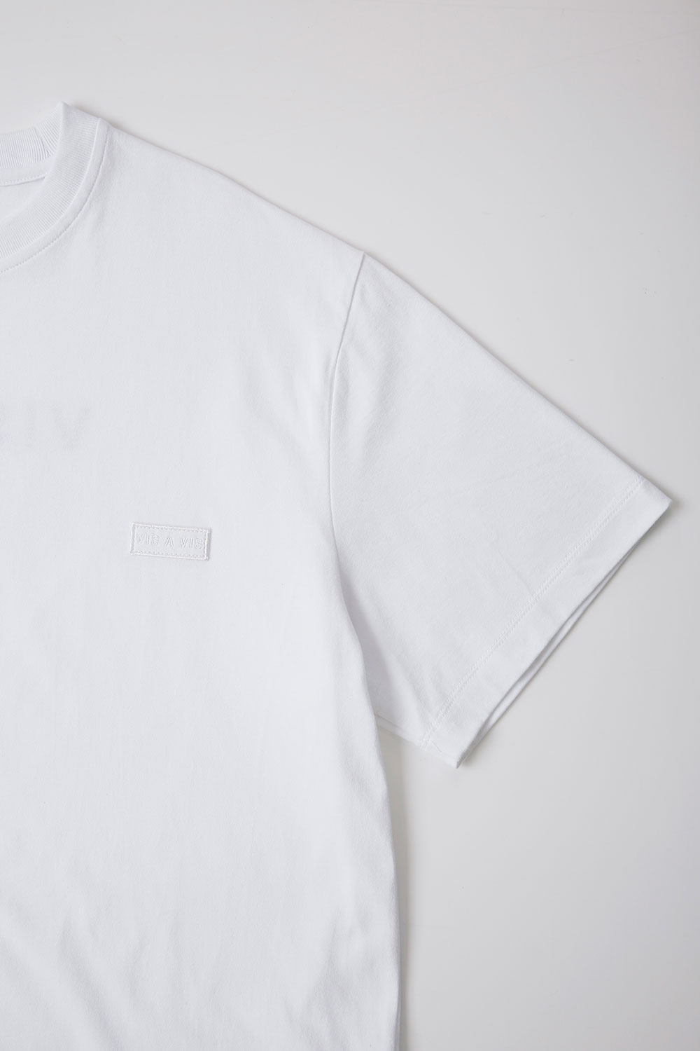 - 오버사이즈 핏의 크루넥 하프슬리브 맨즈 티셔츠 - 유니섹스로 착용가능 - 앞면에 로고 패치, 뒷면에 로고 프린트 - 사이드 밑단에 트임 디테일