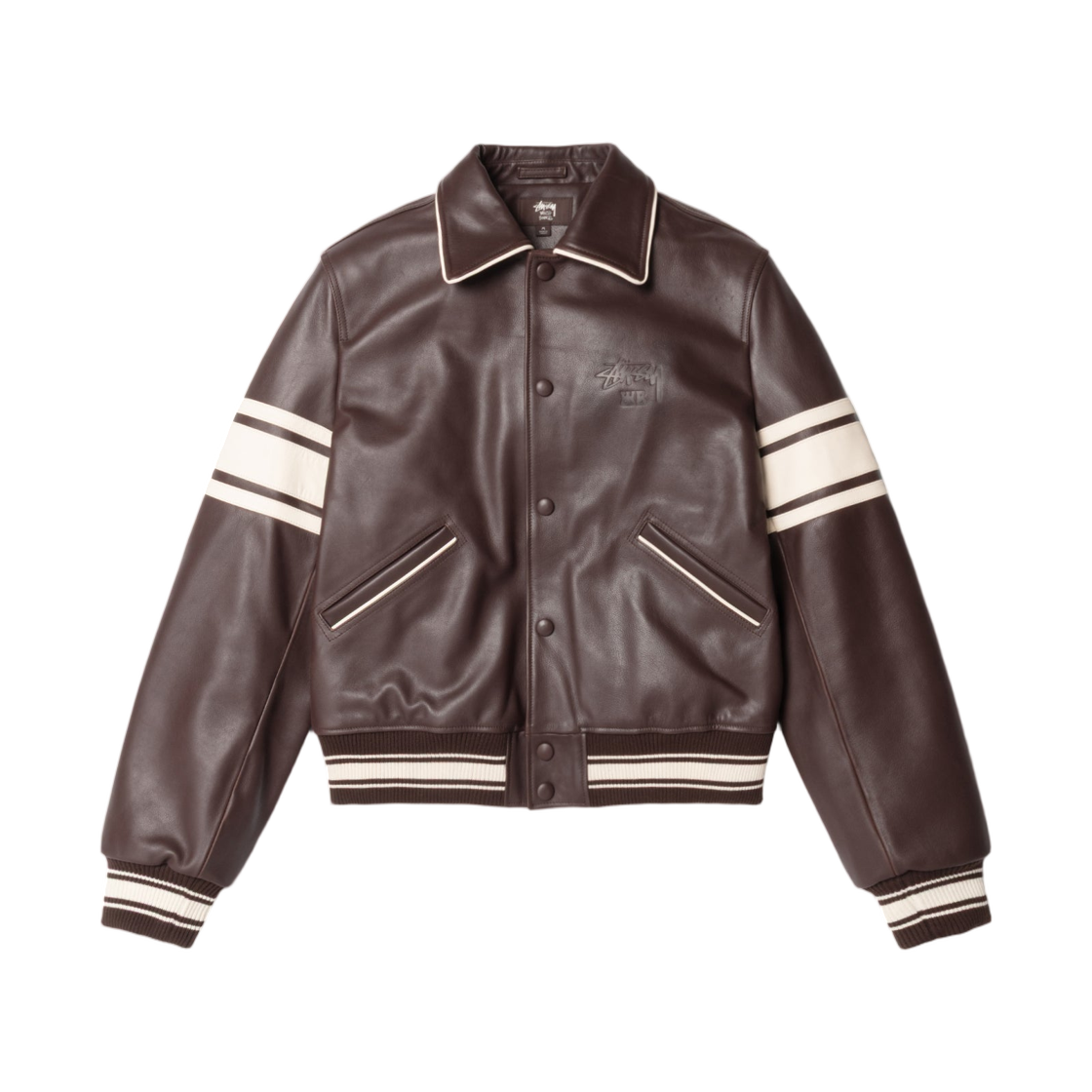 스투시 x 웨일즈 보너 레더 바시티 브라운