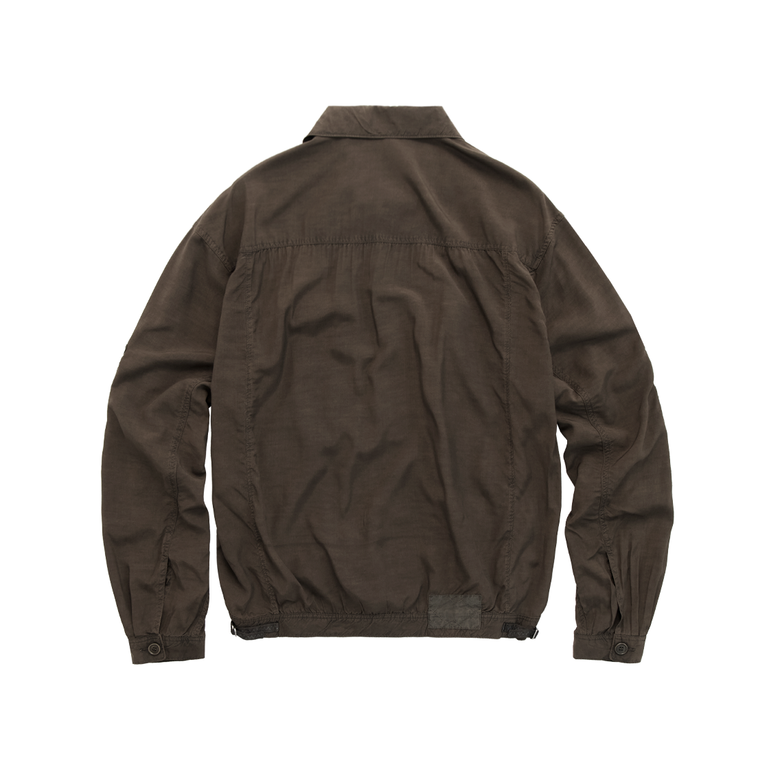 hot stuff x polyteru rayon trucker - black, brown - 은은한 광택감이 특징적인 레이온 트러커 자켓 - 소매의 'DEVIL KIDS' 자수 패치 - 자연스러운 퍼커링 디테일 - 전면 플랩 포켓 & 플리츠 적용 - 버튼 여밈 형식의 사이드 포켓 - 지그재그 스티치 적용된 밑단 어드저스터 - 후면 패치 디테일 - 간절기 착용에 적합한 얇은 두께감 *모델: 170 중반 / 마른 체형, 3사이즈 착용