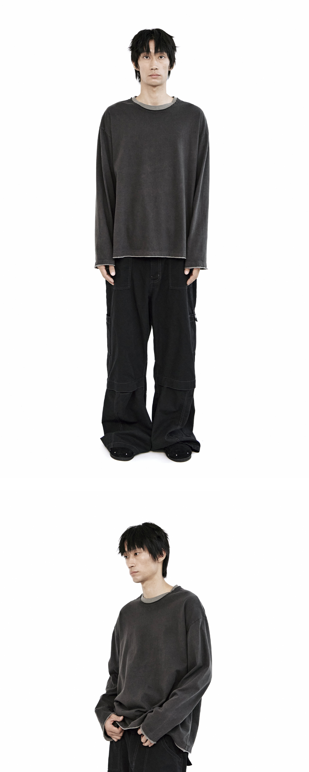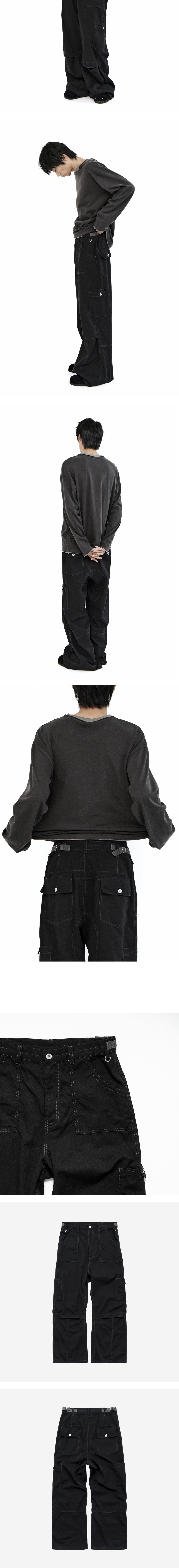 middle pants 2.0 - black - 러프한 외관과 대비되는 유려한 착용감 - 투웨이 지퍼로 개폐 가능한 무릎 플랩 - 약간의 차콜빛이 가미된 블랙 컬러 - 퍼티그 팬츠 형식의 전후면 포켓 - 전면 D링 고리 & 사이드 포켓 디테일 - 사이드 어드저스터 *모델: 170 중반 / 마른 체형, 3사이즈 착용