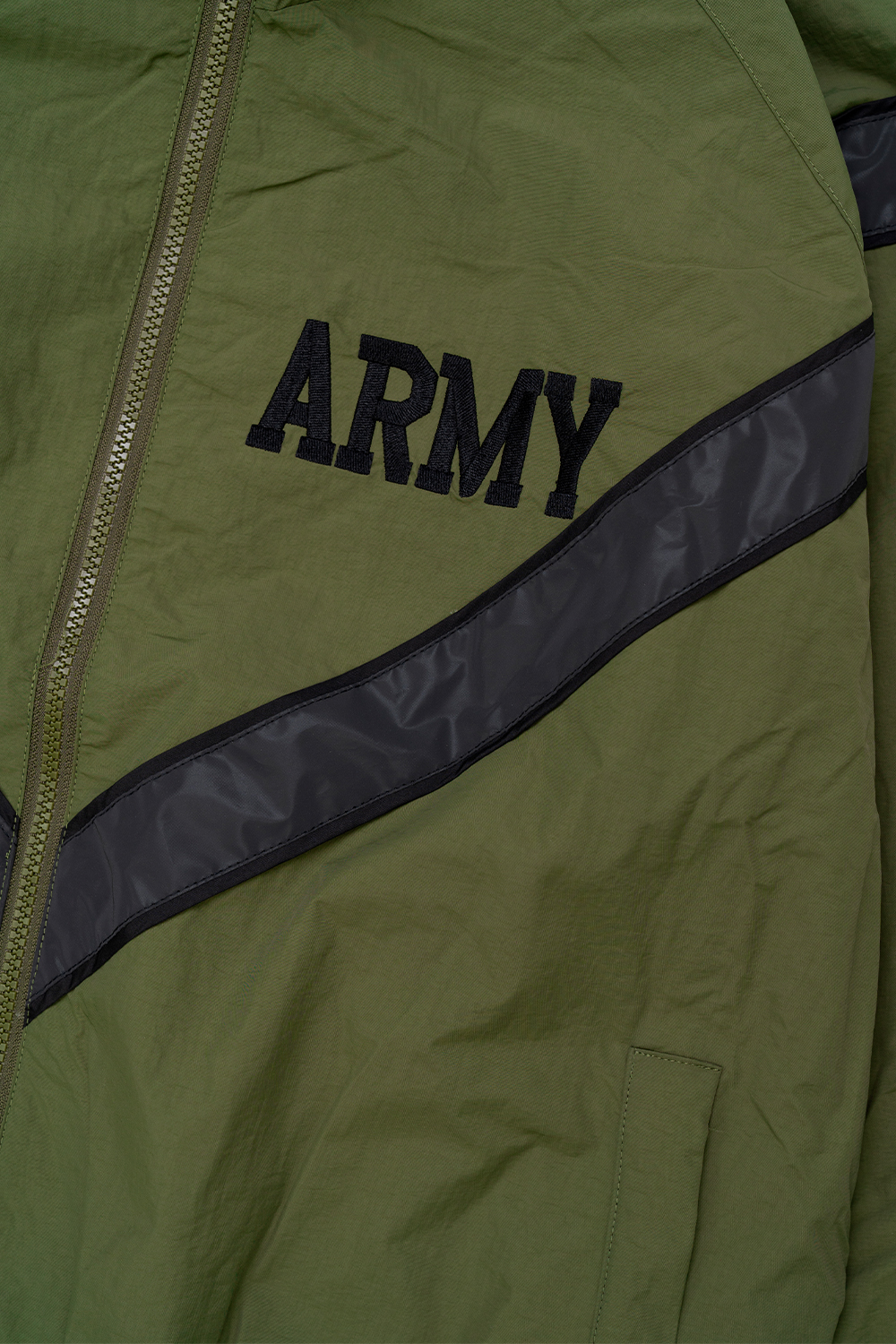 YMCL KY US ARMY IPFU Jacket - Olive 일명 'IPFU' (Improved Physical Fitness Uniform) 수트는 1990년대 채용된 트레이닝 시스템 웨어입니다. 훈련 및 교육에 최적화하기 위해 속건 및 침부성이 뛰어난 소재로 제작되었습니다. 방풍, 발수 처리된 나일론 소재의 쉘, 그리고 통기성이 우수한 매쉬 소재의 라이너로 이루어져 있습니다. 또한 야간 훈련시 시인성을 높이기 위해, 전면부에서 어깨를 지나, 후면부까지 반사 소재를 사용하여 안정성은 높이고 있습니다. 특징인 'ARMY' 자수와 원단, 반사 소재 등을 충실하게 재현한 아이템입니다. 착용시 'L 사이즈'가 일반적인 '103 사이즈' 정도입니다.