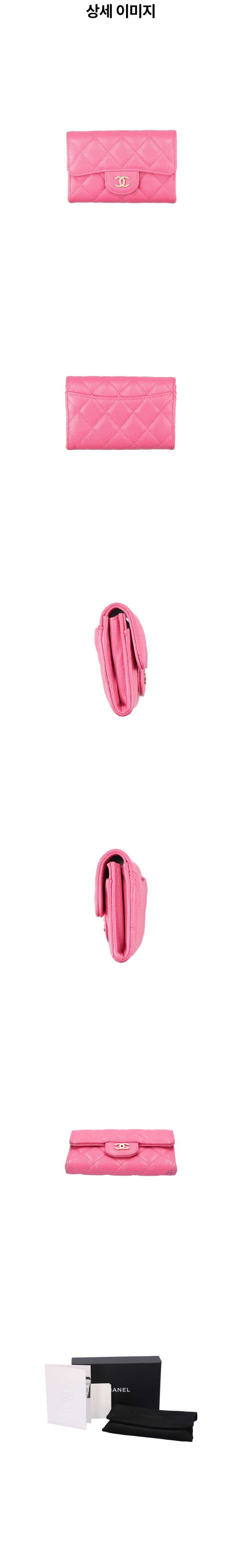 샤넬 AP0214 클래식 카드 지갑 카프스킨 핑크 금장