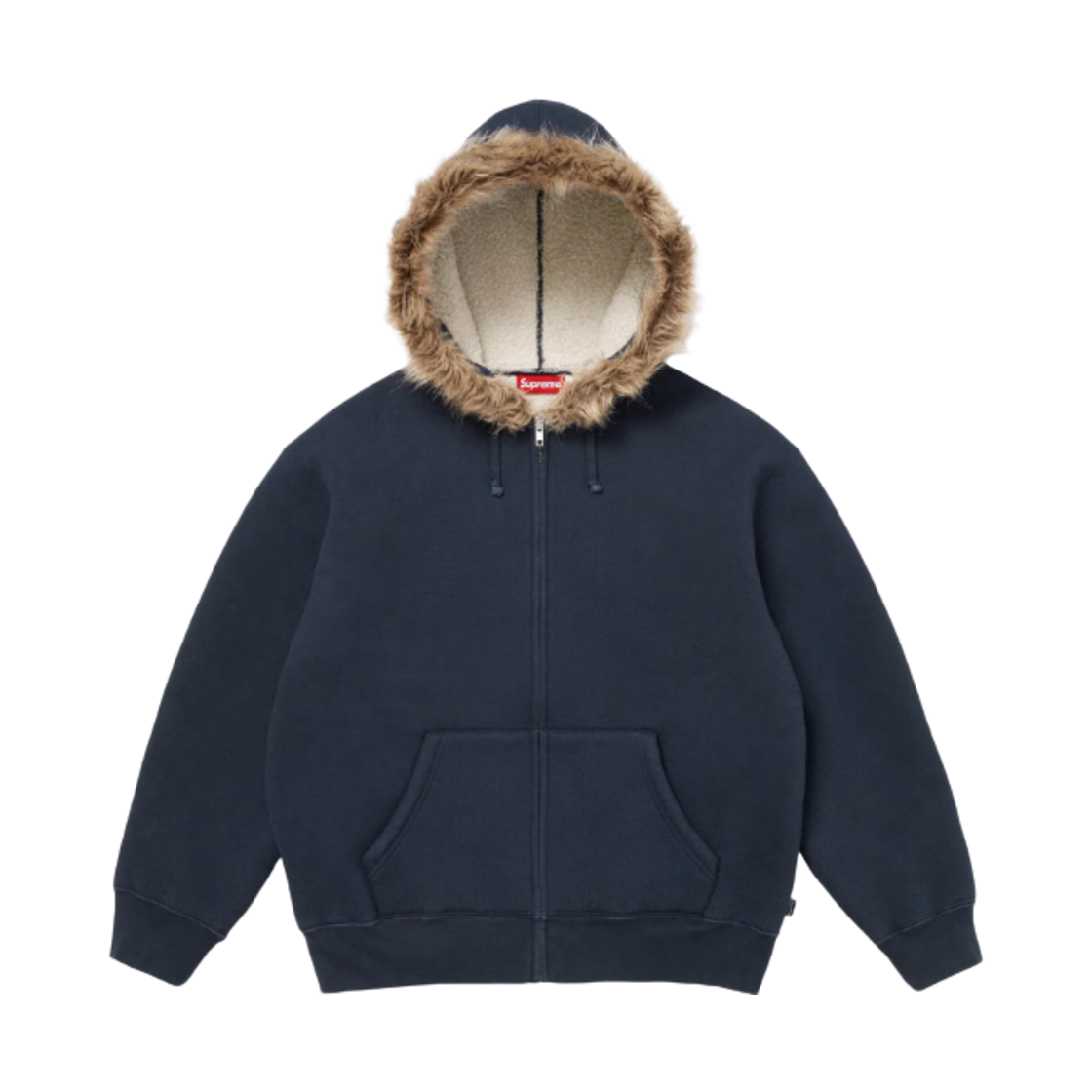 Supreme Faux Fur Zip Up Hooded Sweatshirt Navy - 25FW