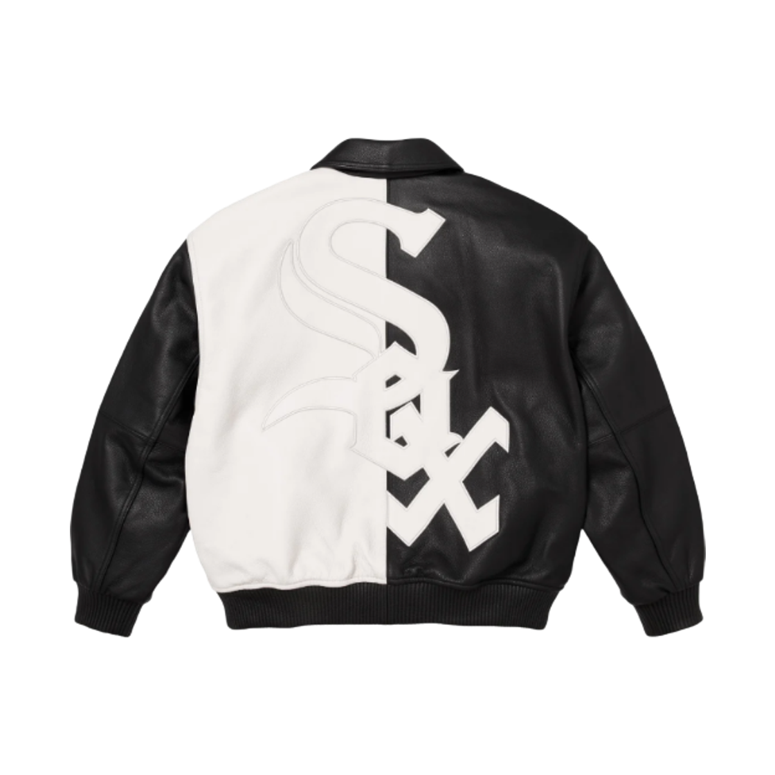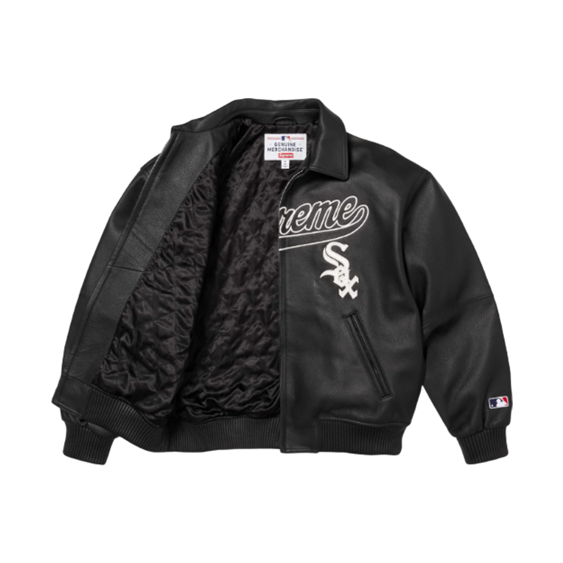 슈프림 x 시카고 화이트 삭스 레더 바시티 자켓 블랙 - 25FW