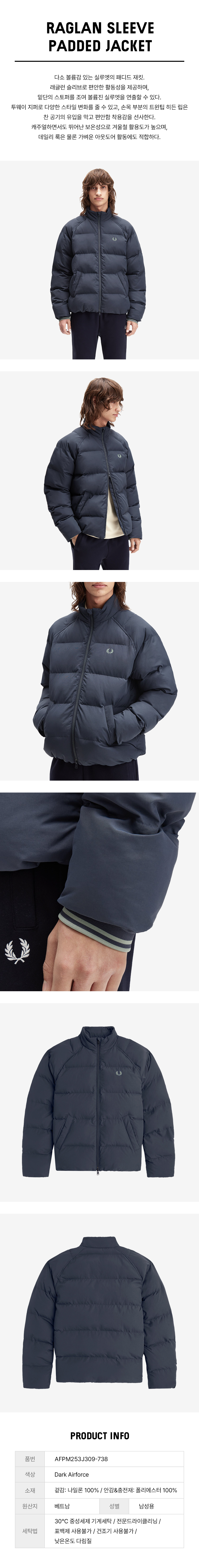 프레드 페리 래글런 슬리브 패디드 재킷 다크에어포스