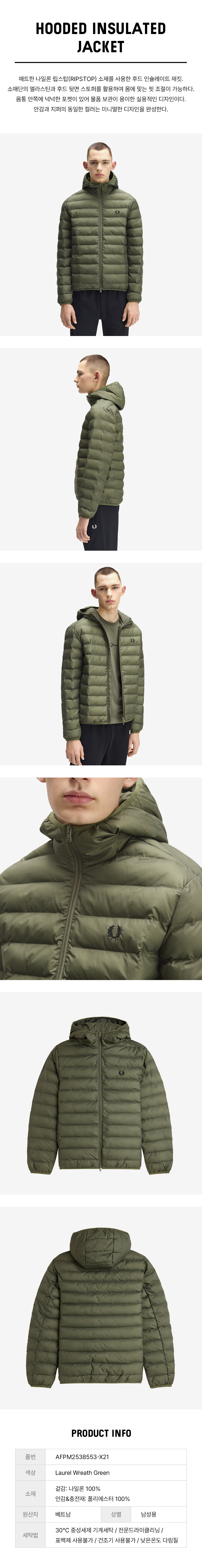 프레드 페리 후드 인슐레이트 재킷 로렐리스그린