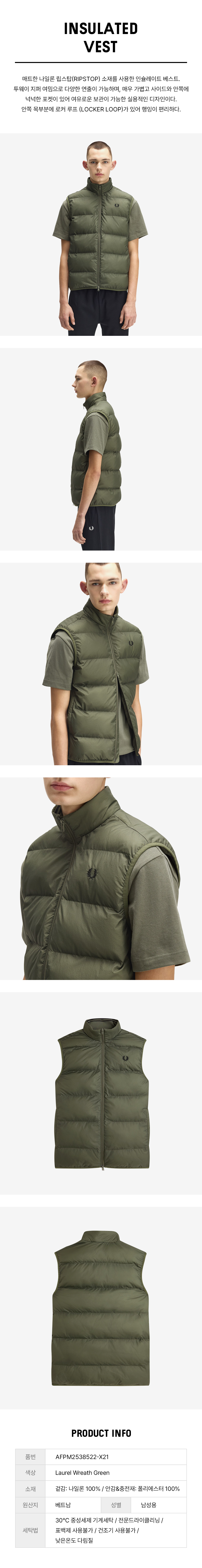 프레드페리 인슐레이트 베스트 로렐리스그린