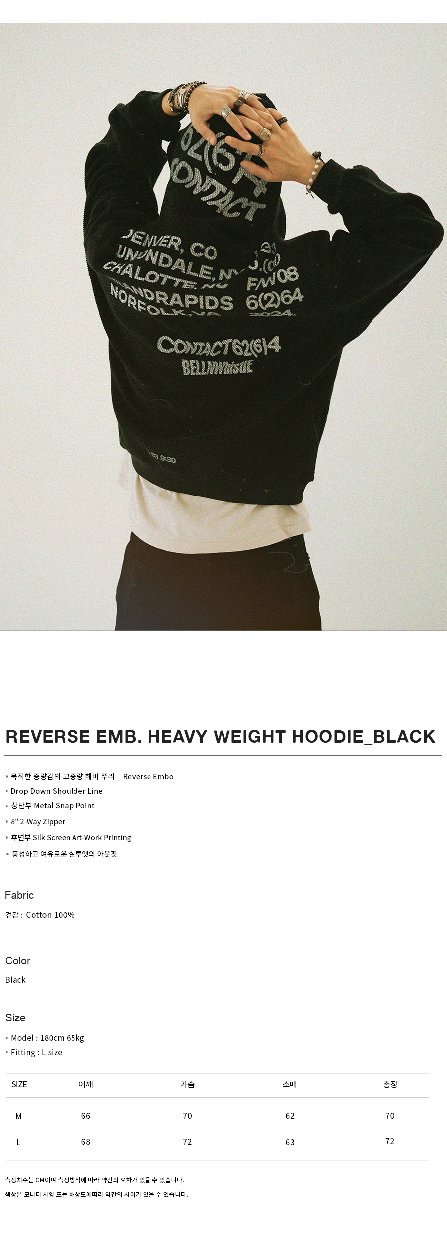 코드 리버스 엠브 헤비 웨이트 후디 블랙