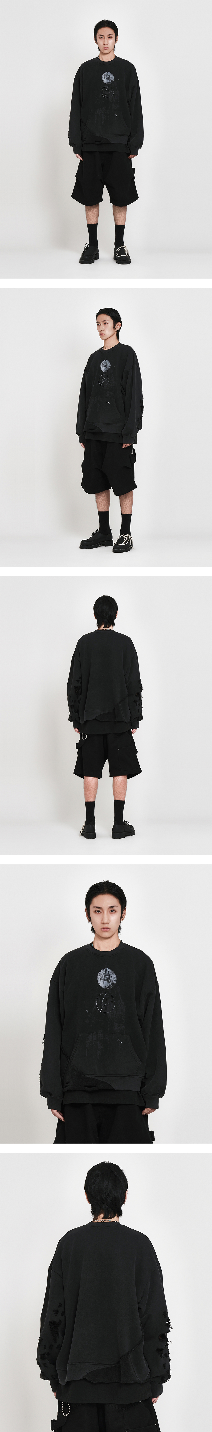 코드 디플렉션 데미지드 스웻셔츠 블랙