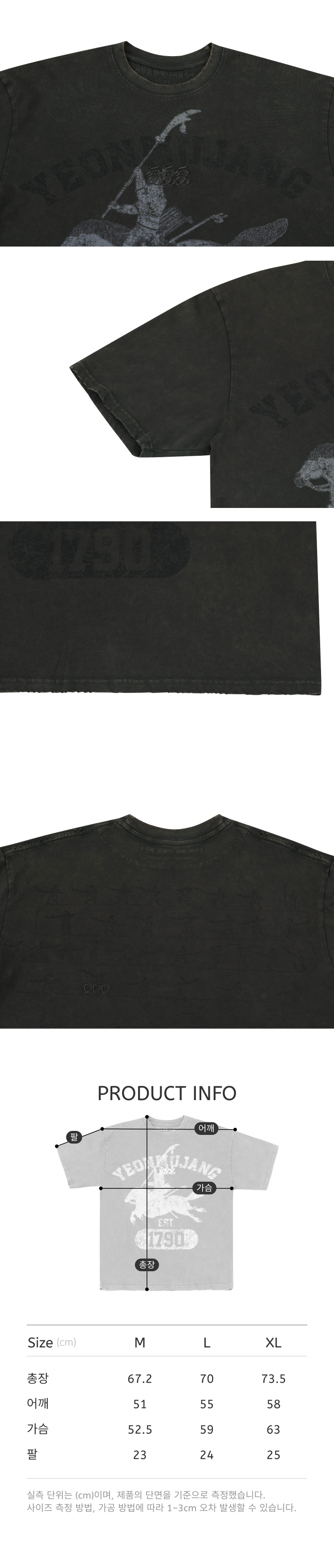 러브러브러브의 플래그십 스토어가 있는 서울 성수동 연무장길은 약 230년 전, 조선 정조 14년(1790)에 군인들이 무예를 닦던 역사 깊은 ‘연무장’입니다. 이 특별한 장소를 기리고자 티셔츠 전면에는 《무예도보통지》의 ‘마상월도’, 후면에는 월도 훈련 장면을 담은 고전 그림을 프린트해, 브랜드의 지역 정체성과 스토리를 자연스럽게 녹였습니다. 부드러운 촉감과 통기성이 뛰어난 코튼 소재에 빈티지한 느낌을 더한 디스트레스 처리 디테일과 워싱, 앞뒤에 추가된 자수 장식으로 고품질의 디테일을 제공합니다. 루즈핏에 살짝 짧은 기장감, 트렌디한 실루엣으로 만들아져 여름에 티셔츠 하나로 외출이 가능한 룩을 완성합니다.