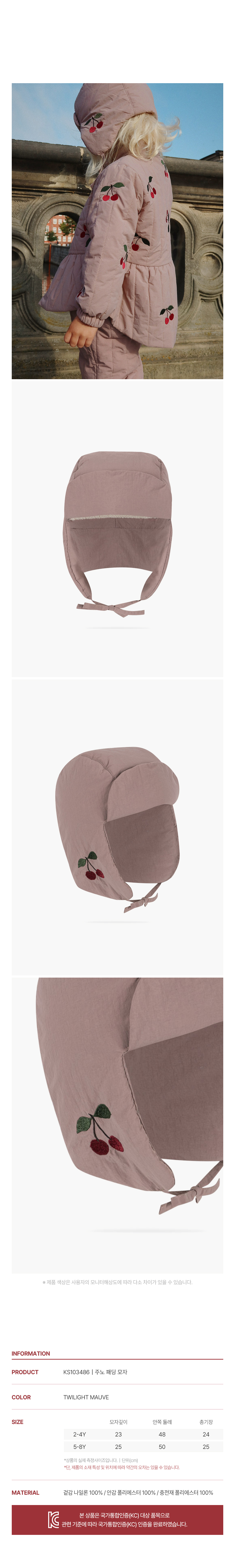 콩제슬래드 주노 패딩 모자 체리