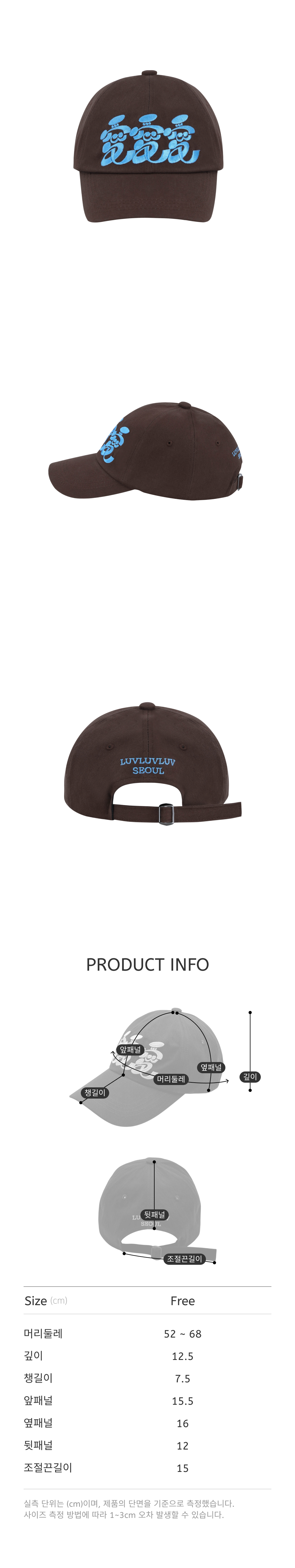브라운 색상에 시그니처 그래픽을 청량한 블루 자수로 장식한 데일리 볼캡 입니다. 깊은 깊이의 캡과, 챙의 각도로 눈썹아래로 깊게 눌러 쓸 수 있으며 촘촘한 대형 전면 자수로, 얼굴이 매우 작아보이는 핏을 제공합니다.