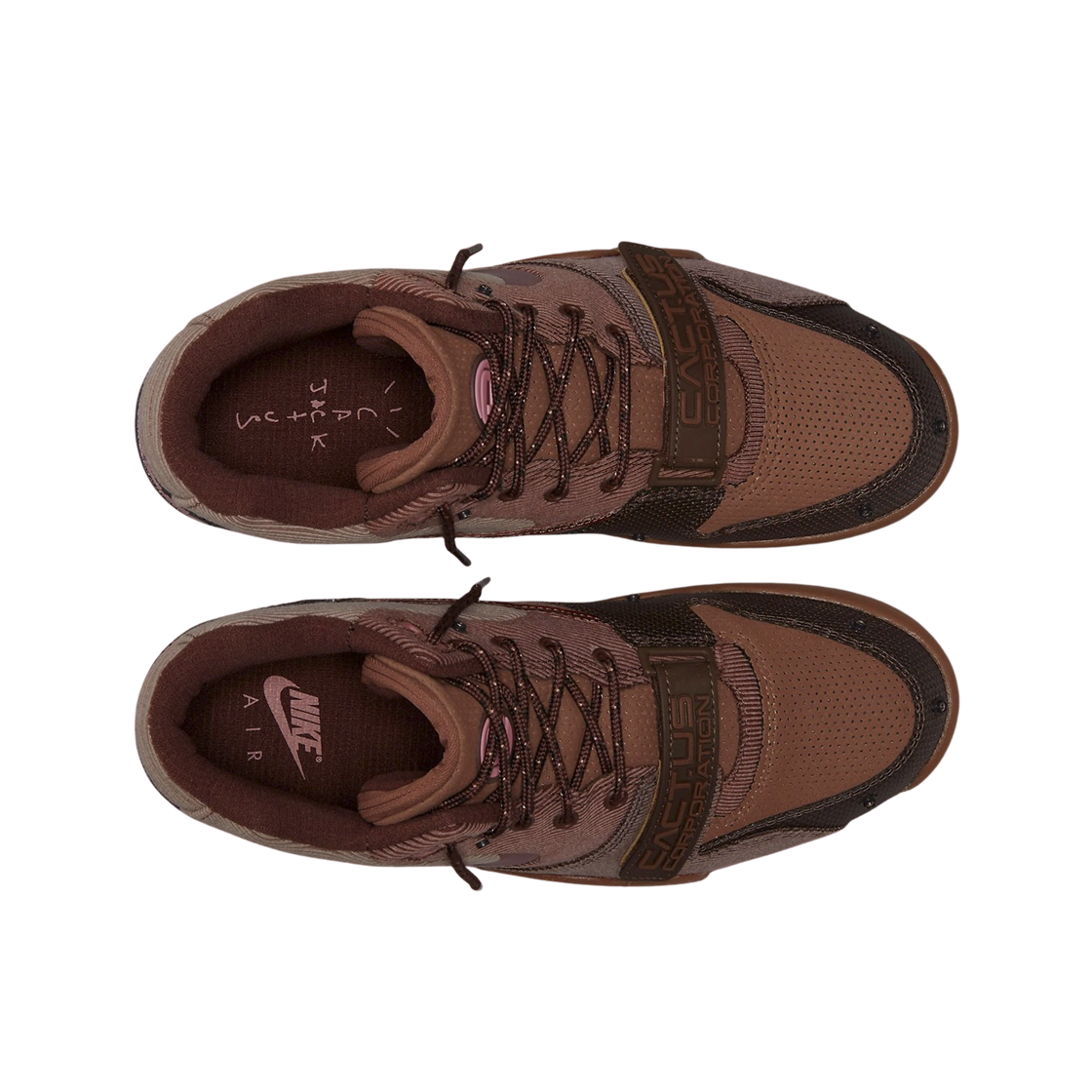 Nike x Travis Scott Air Trainer 1 Archaeo Brown and Rust Pink