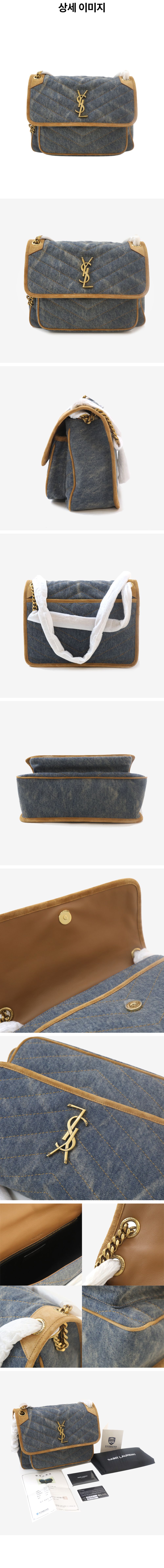 생로랑 633184 니키 미디움 데님 스웨이드 트리밍 체인 숄더백