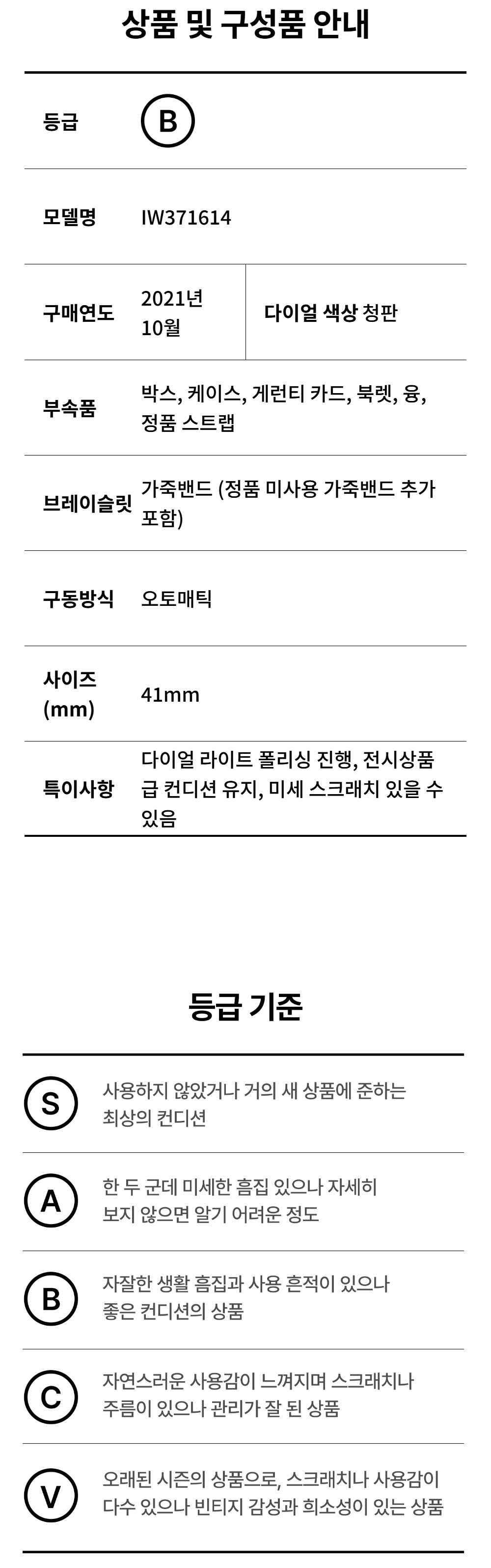 IWC IW371614 포르투기저 크로노그래프 오토매틱 청판 가죽밴드 41mm