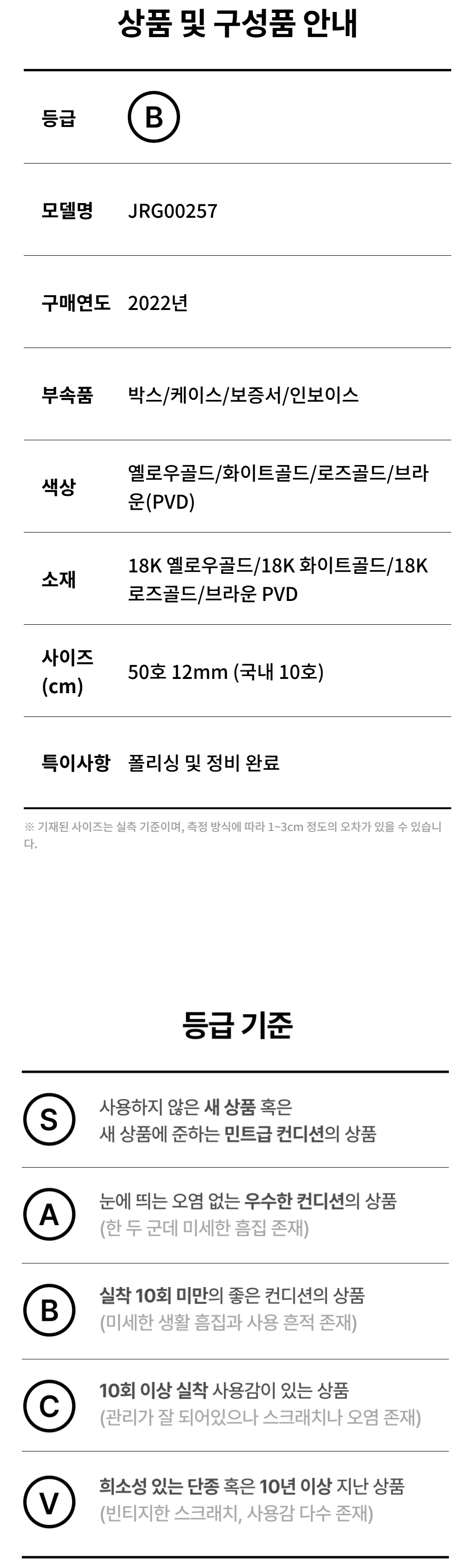 부쉐론 JRG00257 콰트로 클래식 라지 링 50호 12mm
