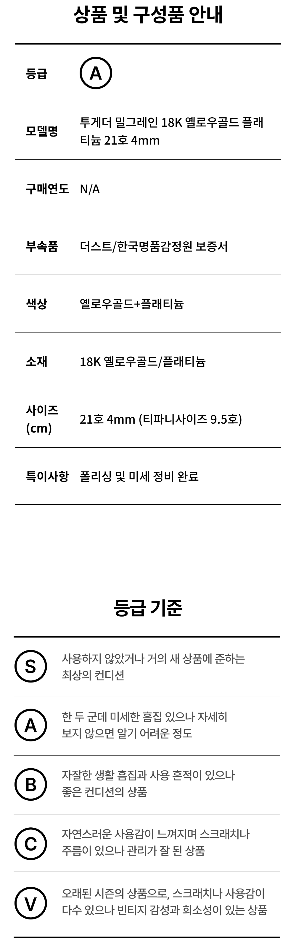티파니앤코 투게더 밀그레인 18K 옐로우골드 플래티늄 21호 4mm